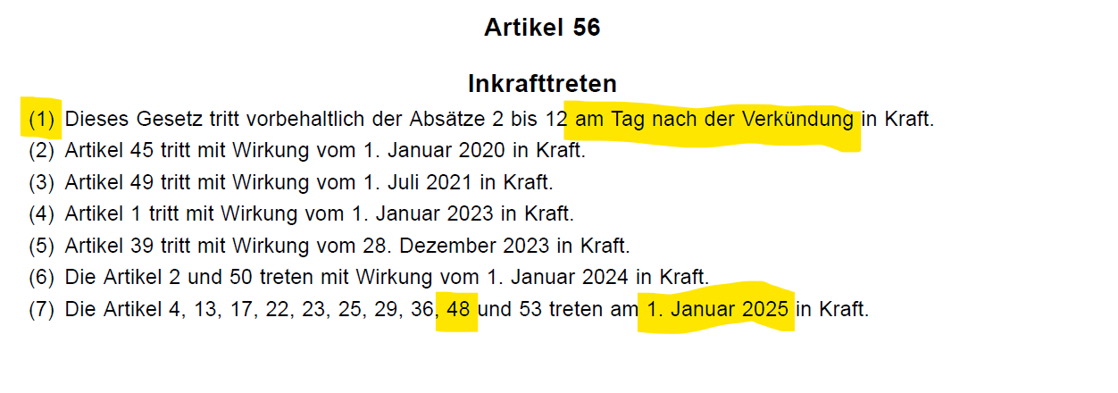 Auch wichtig, das Inkrafttreten: