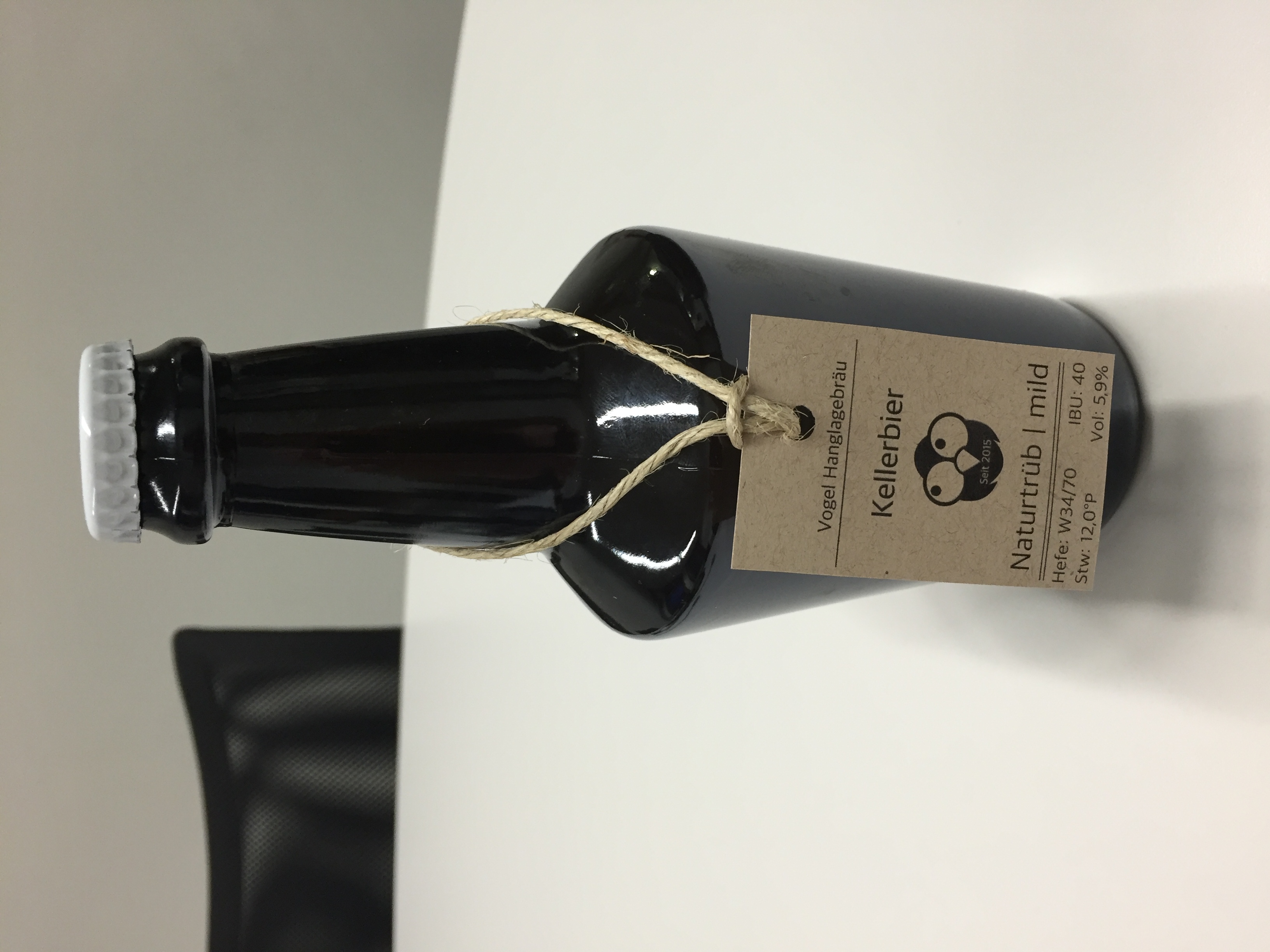 Ich hatte allerdings überlegt es in Anlehnung an das "G'frorens" der Brauerei Hofstetten zu gestalten und eine Kugelkette als Befestigung der Hängeetikette zu nehmen...