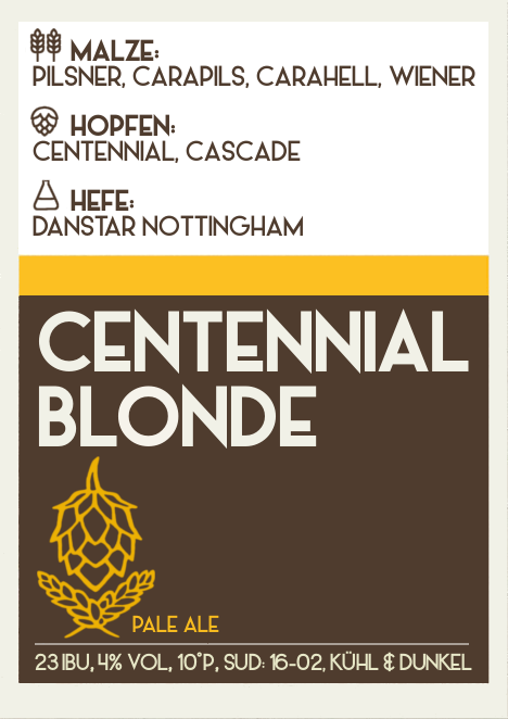 Meist suche ich mir im Web alte geeignete Flyer oder Werbeschilder. Nachdem ich den Text überpinselt habe schiebe ich mir das Bild so um, dass der Text ordnetlich reinpasst. Da die Biers nicht verkauft werden kann das so privat genutzt werden. Im Falle des Centennial Blonde habe ich ein altes Kassettenlabel nachgebastelt und mich an die ursprünglichen Farben gehalten.