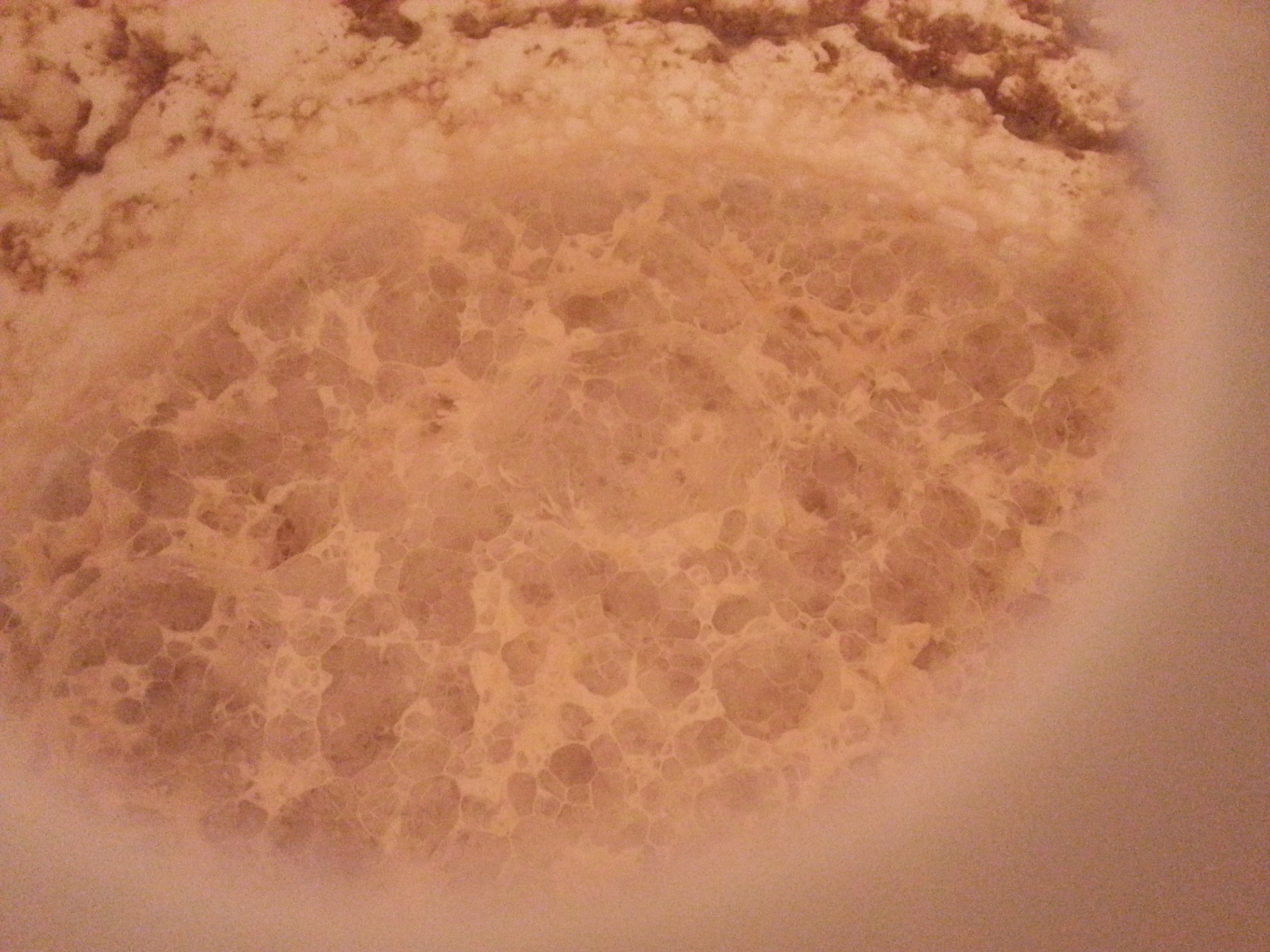 "Mein Weizen mit der W68er Hefe ist nun den 4. Tag in der gärung. Irgendwie richt es ungewöhnlich stark und irgendwie schlecht. Der Schaum obendrauf ist ungewöhnlich grobporig und sieht sehr fest aus. Er erinnert sehr an Bienenwaben.