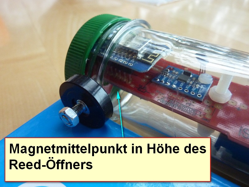 Wenn die Spindel schwimmt muss der Wemos + GY oben sichtbar sein.