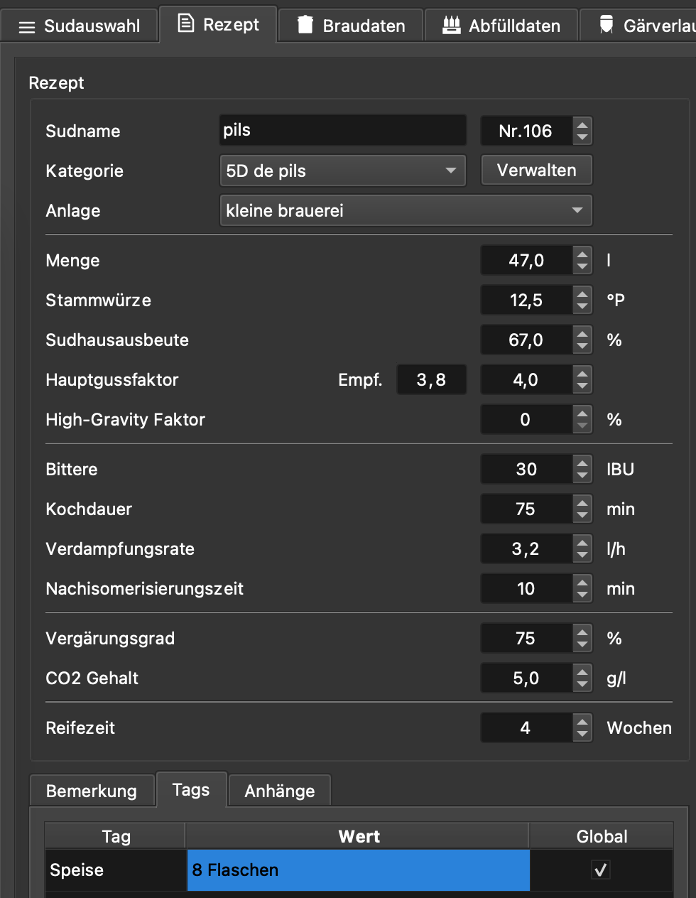 Du kannst die Flaschengrösse unter Abfülldaten einstellen.Karel hat geschrieben: Sonntag 30. Januar 2022, 13:08 Moien,