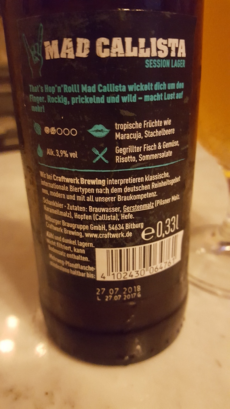 Mad Callista von Craftwerk (wusste nicht dass die auch zur Bitburger Braugruppe gehören)