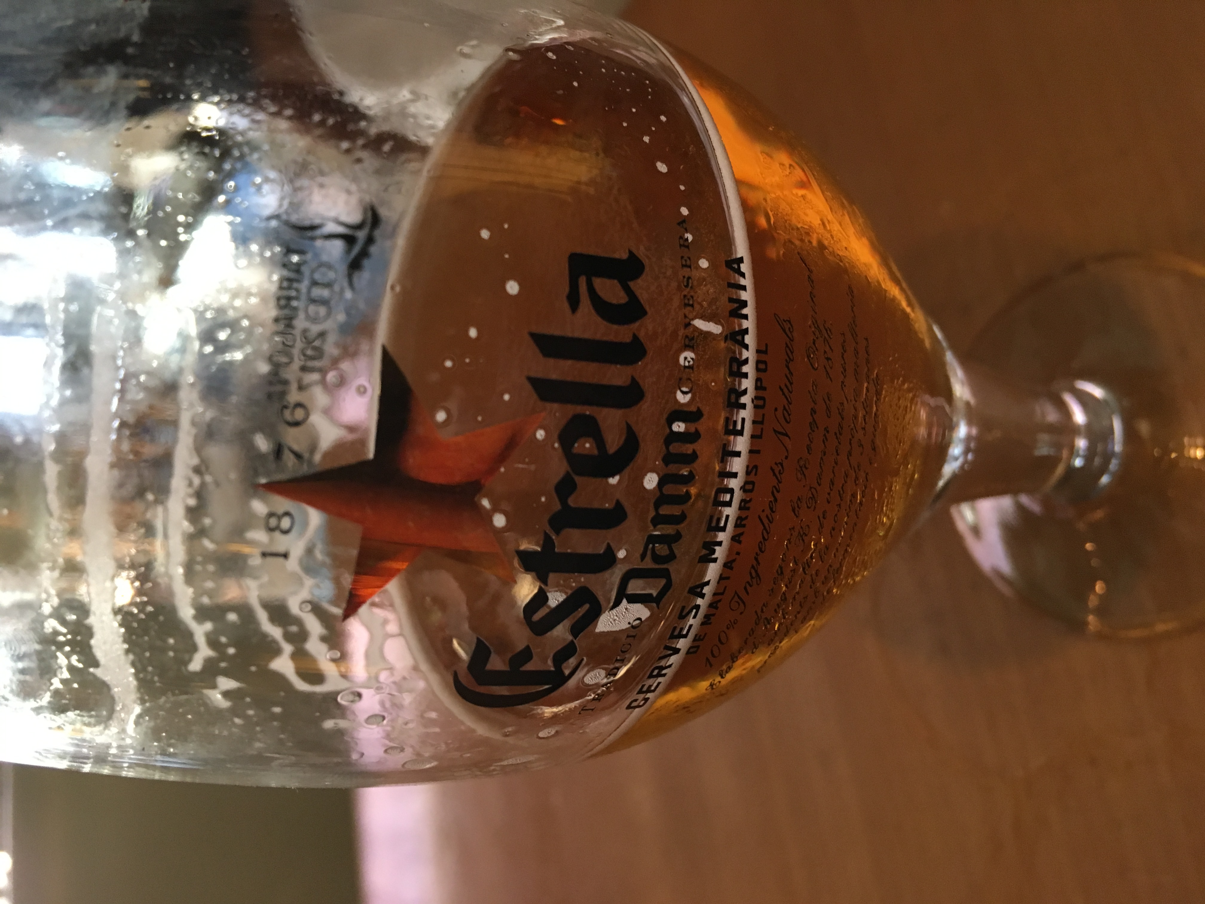 Bin grad auf ner Dienstreise in Spanien. Daher gib’s ein Estrella Damm. Nachher gibts noch ein Voll Damm. Wenn ich meinen Gärkühlschrank hab werde ich mich mal an nem Voll Damm Klon versuchen.