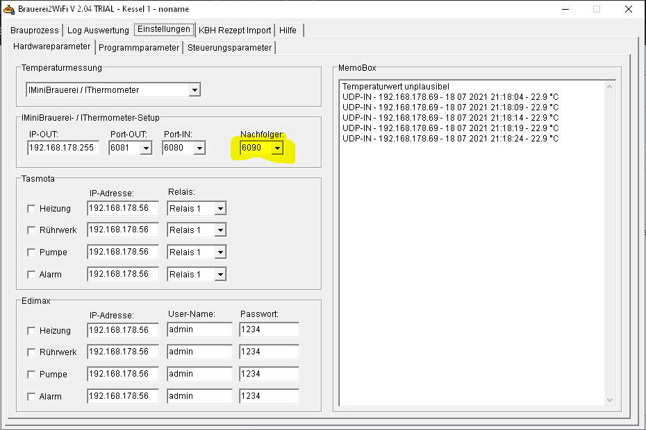 Dann in dem IMiniBrauerei Wemos Port Out= 5002 und Port In= 5001 einstellen