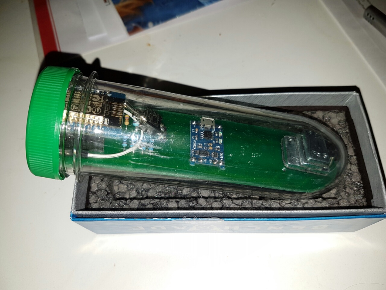 Wenn das Röhrchen aus Kupfer ist, wie kommt dann das Funksignal raus? Da muss dann oben mindestens noch was Durchlässiges für die Datenübertragung drauf sein. Ein Plastikdeckel?
