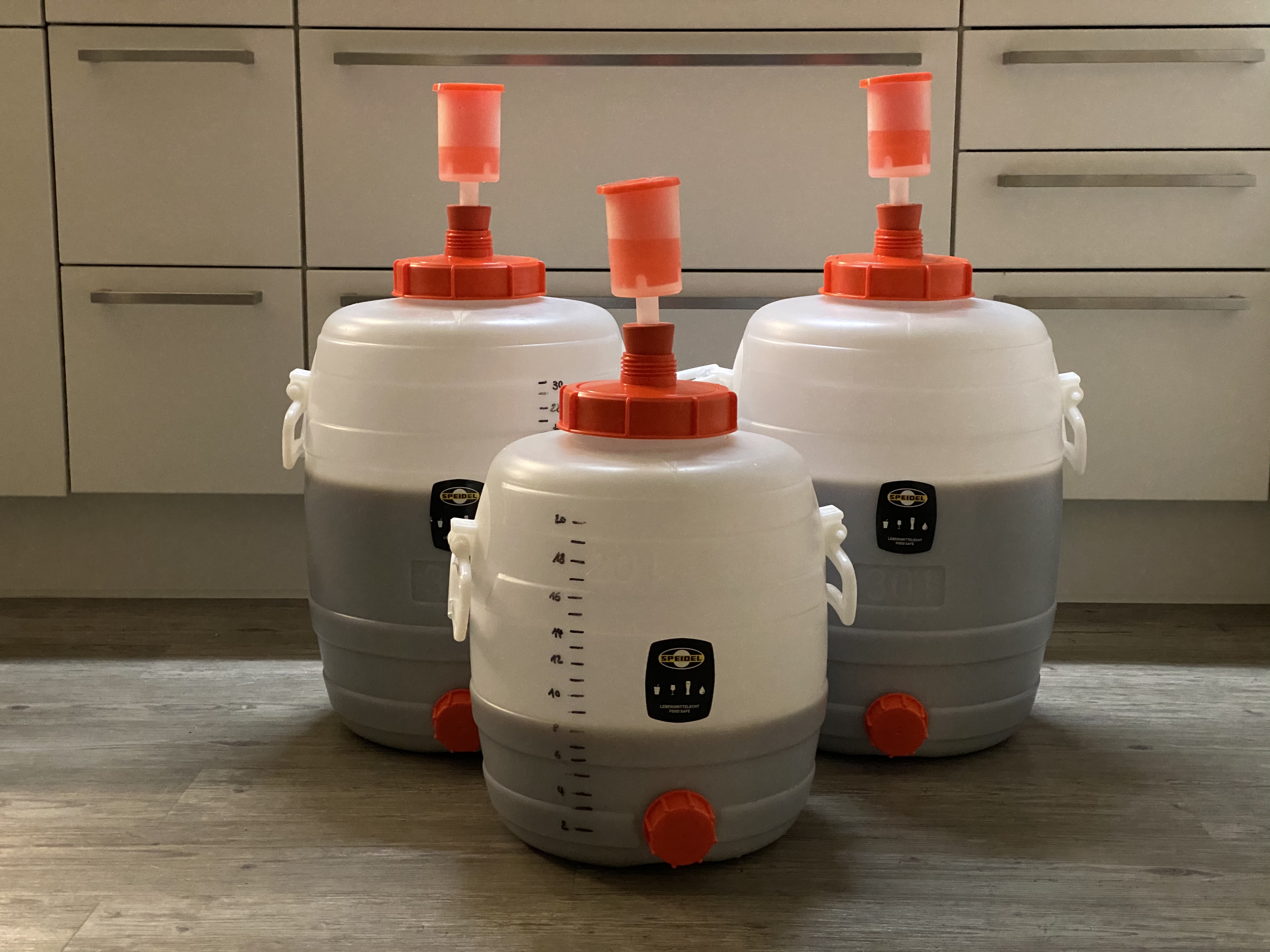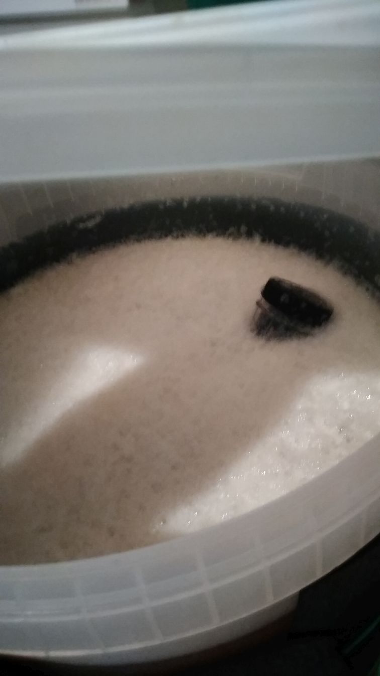 Gerade war ich am Kühlschrank, die Kräusen stehen bei 25l stellenweise am Deckel des 33l-Eimers an