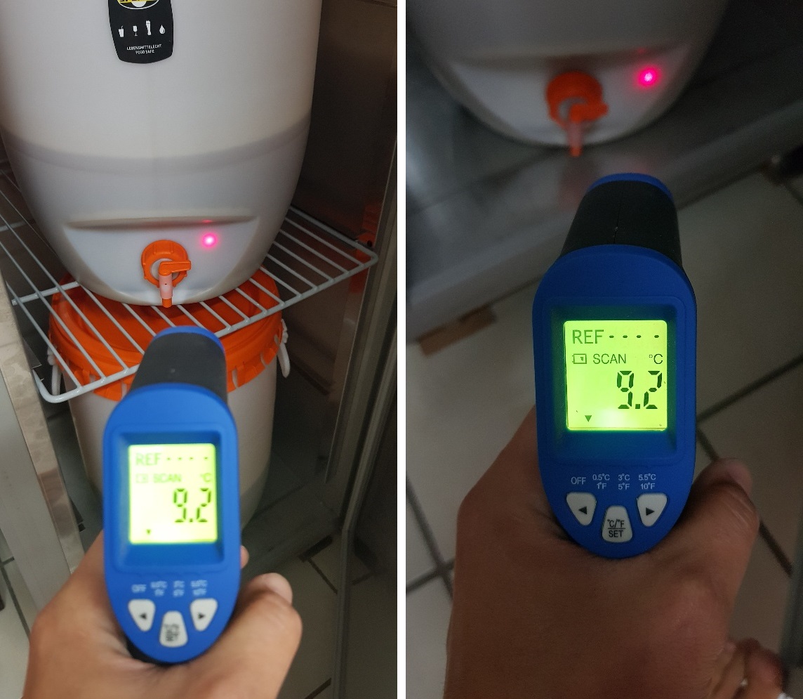 Bin jetzt bereits auf 6,4°C Kühlschranktemperatur um die 8°C Gärtemperatur zu halten, werd aber gleich noch auf 6,0°C runterregeln.