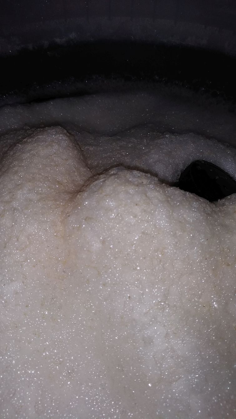 Nach 14 Stunden sind die Kräusen ca. 1-2 cm hoch: Nach 26 Stunden ist vom Deckel der iSpindel kaum mehr was zu sehen, die Kräusen haben teilweise eine Höhe von mind. 5-8 cm: