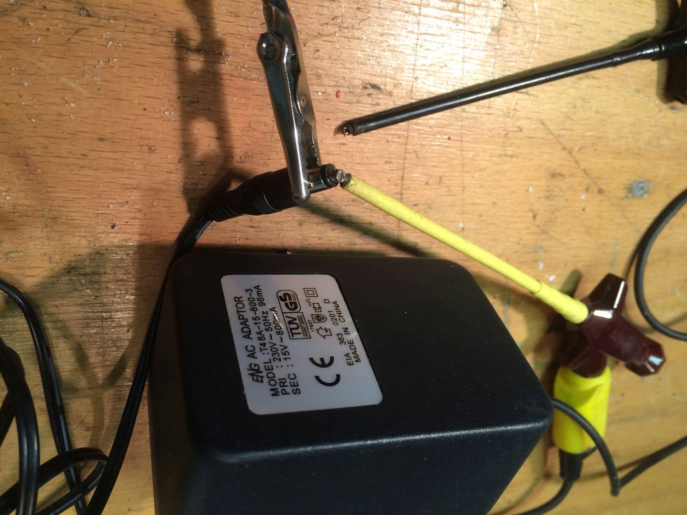 Ich habe es mit einer alten Kohlebürste von einem Elektromotor gemacht. Trafo hatte 15 Volt, das zischt dann schon, wenn man zu lange auf einer Stelle bleibt.