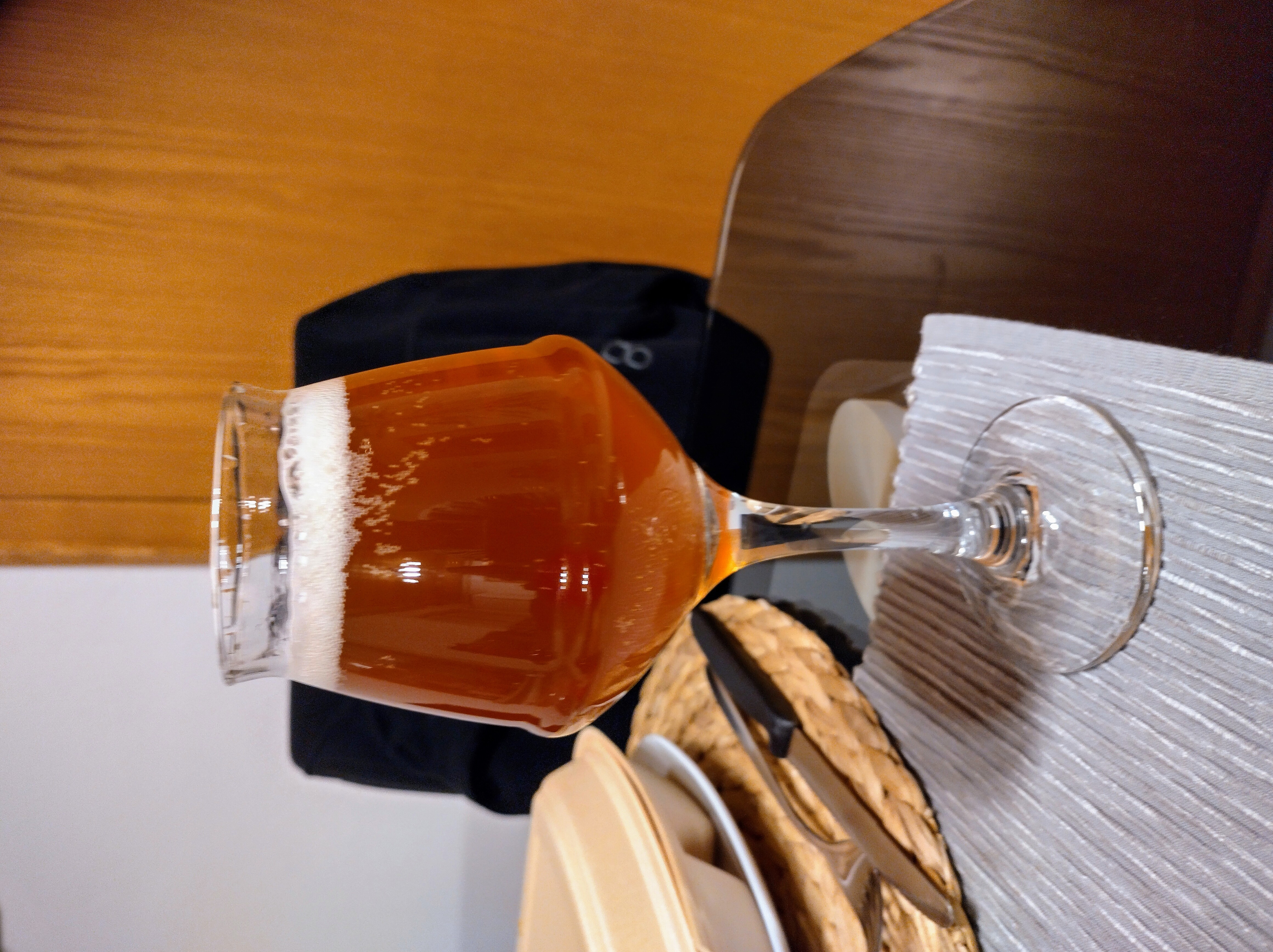 Optik: Sehr schöne Bernsteinfarbe, sehr klar. Toller feinporiger und beständiger Schaum. Optisch echt klasse.