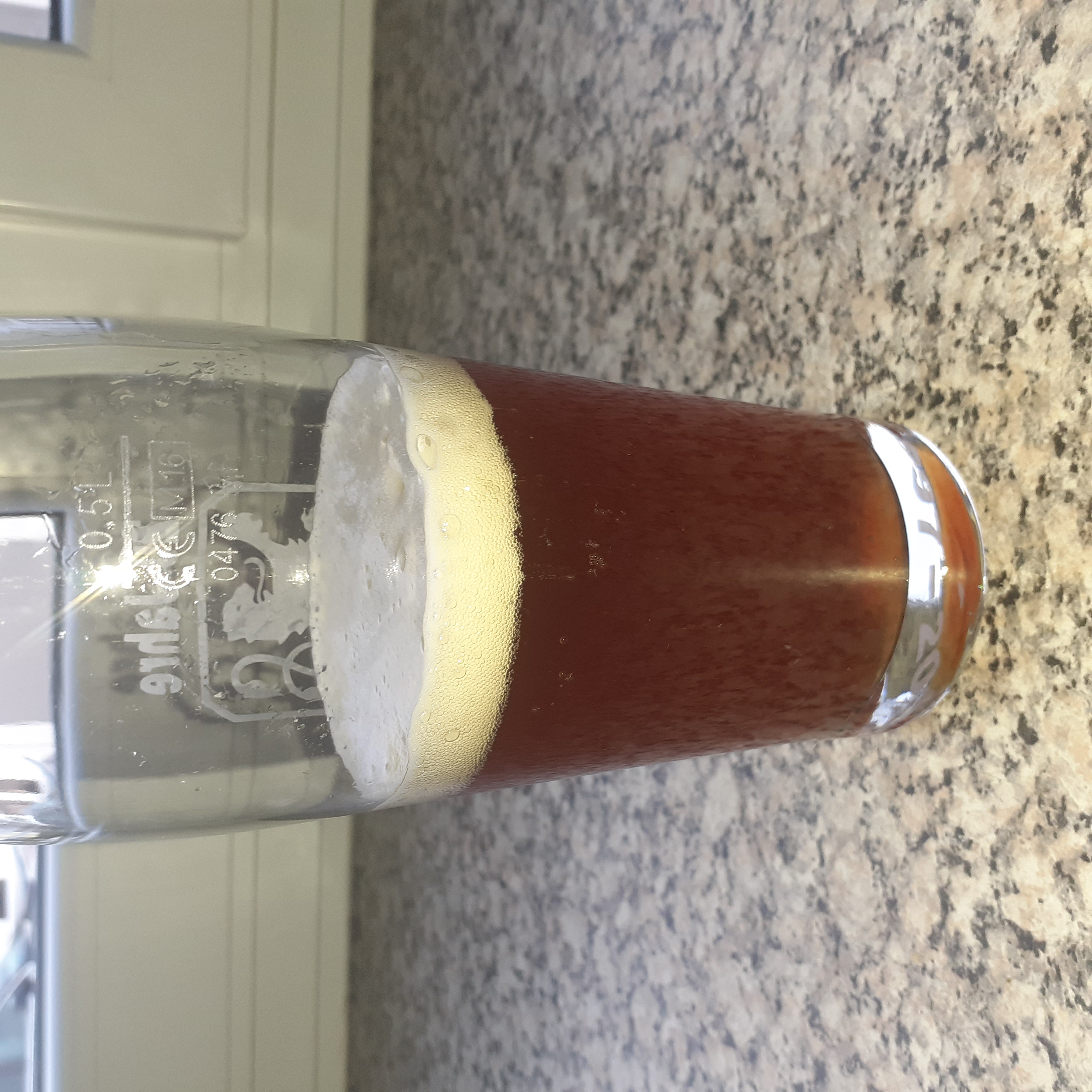 Für die genaue Farbe bräuchte man etwas Gegenlicht. Sieht aber so aus wie ein sehr entspanntes Kellerbier.