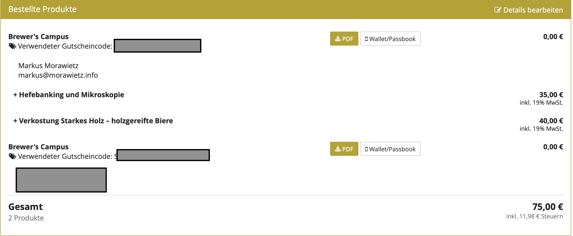 Edit - ich habe zwei Kurse gebucht, und habe zwei Gutscheine