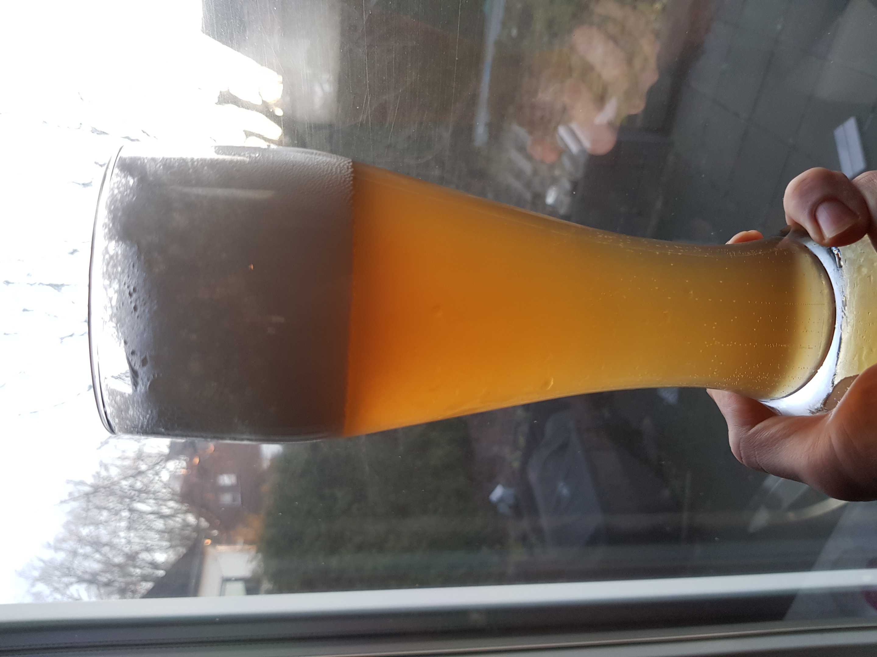Die Schaumkrone stabil, die Farbe ging hier eher in die bräunliche Richtung. Dazu war das ganze ordentlich Hefig.