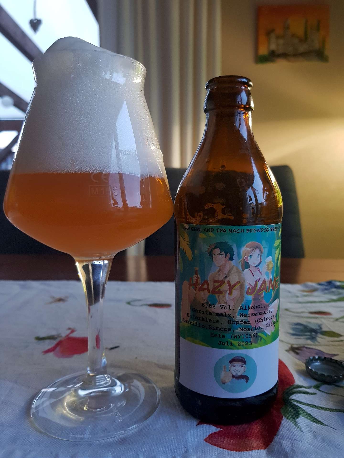 Schmeckt auch wie ein Tripel :Bigsmile . Soll 11 % haben, die sind aber ziemlich unauffällig. Uns (hab es mit Frau Malzzahn geteilt) fällt beiden ein etwas blumig-parfümierter Geschmack auf. Ist nicht zu riechen, aber sehr deutlich zu schmecken. Ich weiß nicht, ob das vom Styrian Goldig oder der Hefe kommt. Das Bier ist lecker, das blumige aber etwas anstrengend und hallt ziemlich lange nach.