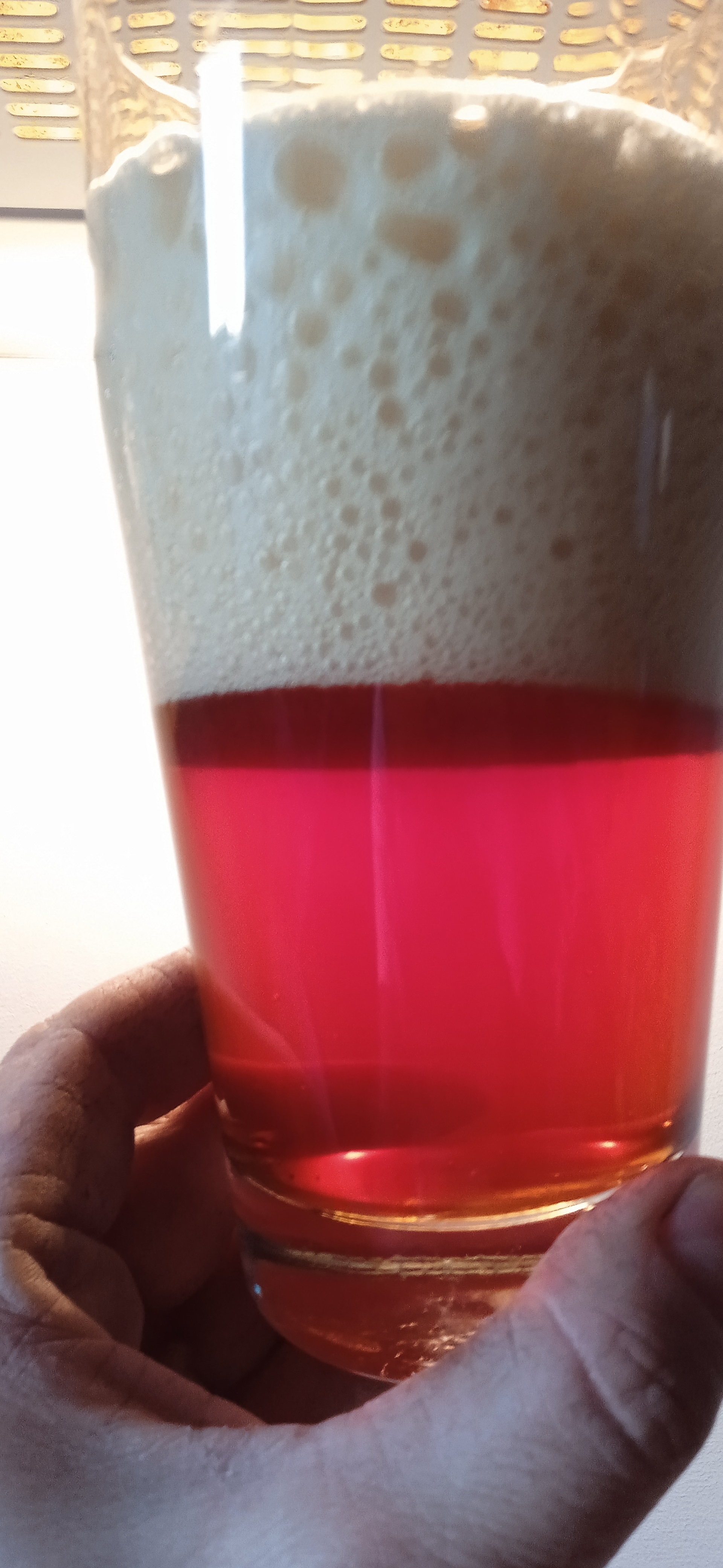 Ein rötliches Bier im Glas, der erste Geruch Kirsche, danach stellt sich ein anderer Geruch ein, kenne ich komme aber nicht darauf.