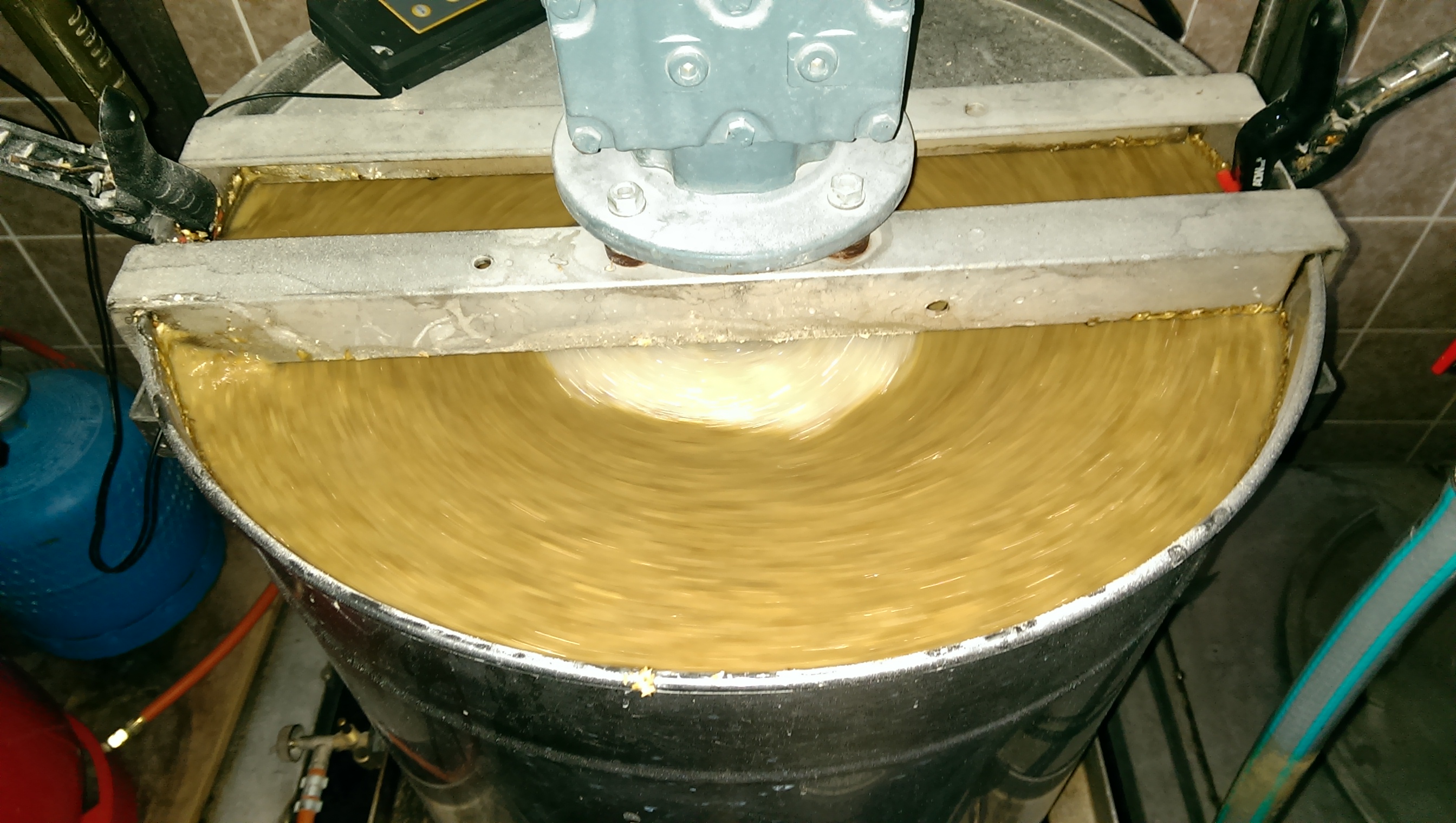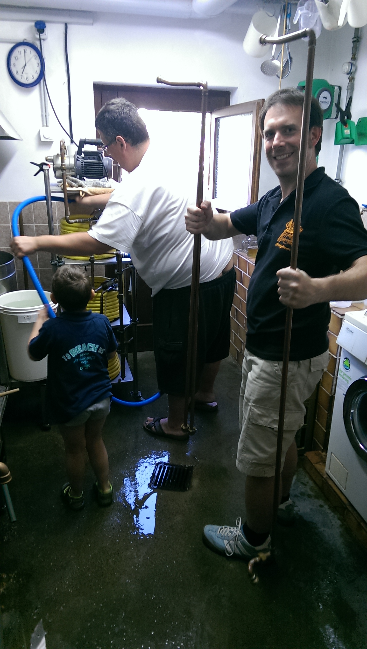 Gestern gings damit ab zu Holger. Seinen Braukeller hatte er extra herausgeputzt, sogar die Kühlrippen seines Motors zum Maischerührers erstrahlten in voller Herrlichkeit..