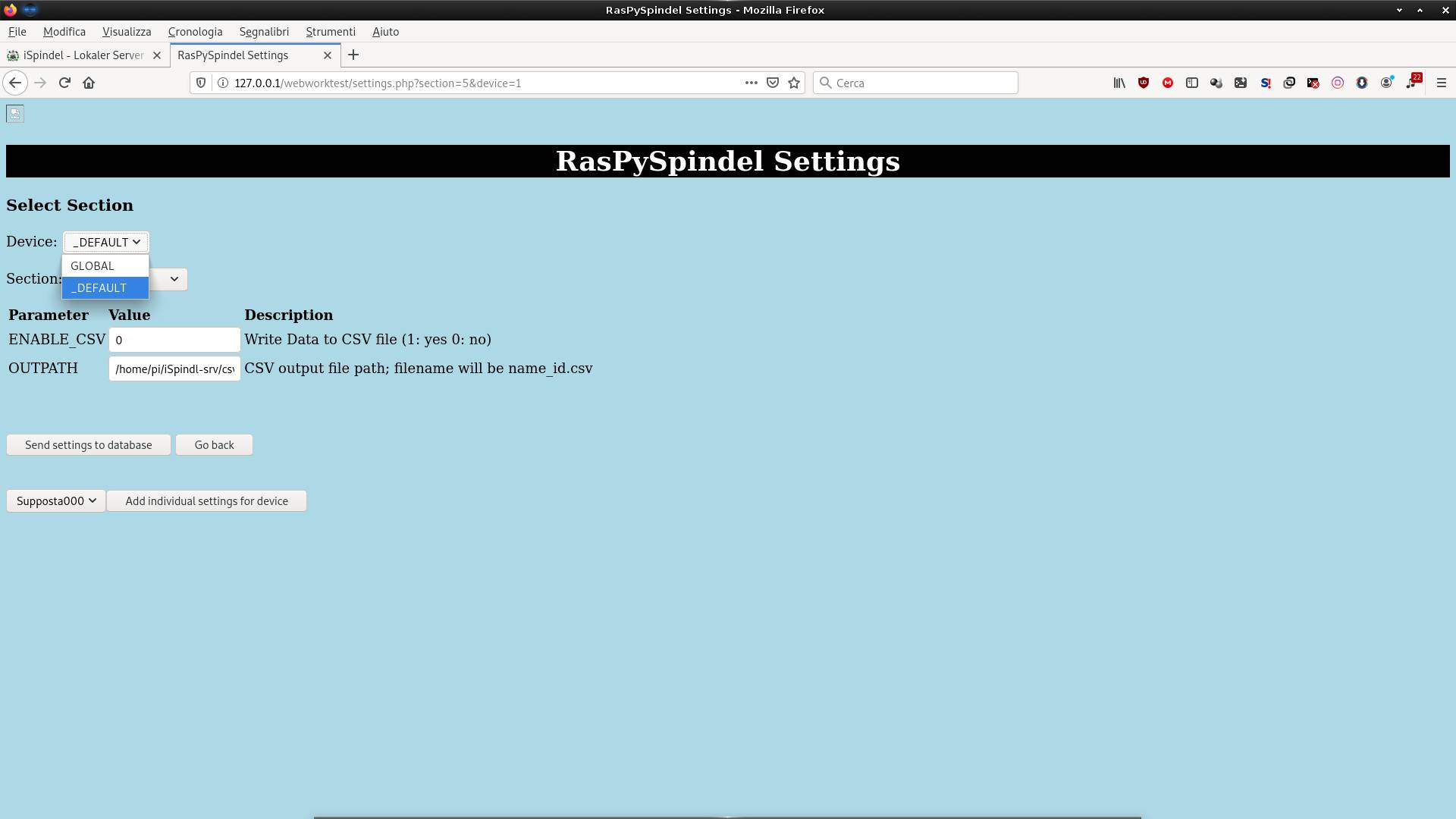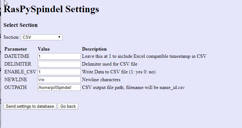When it's working you can access via web browser (index.php) and got to the settings page and enable and configure the CSV part: