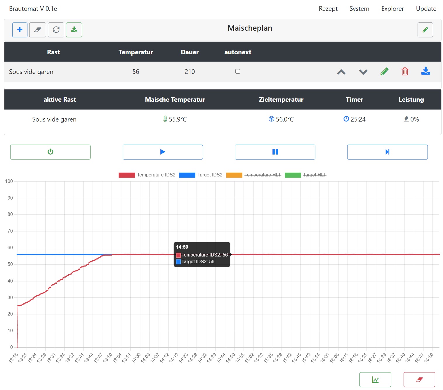 Der Maischeprozess muss mit den Werten starten, wenn Du den Powerbutton anklickst.