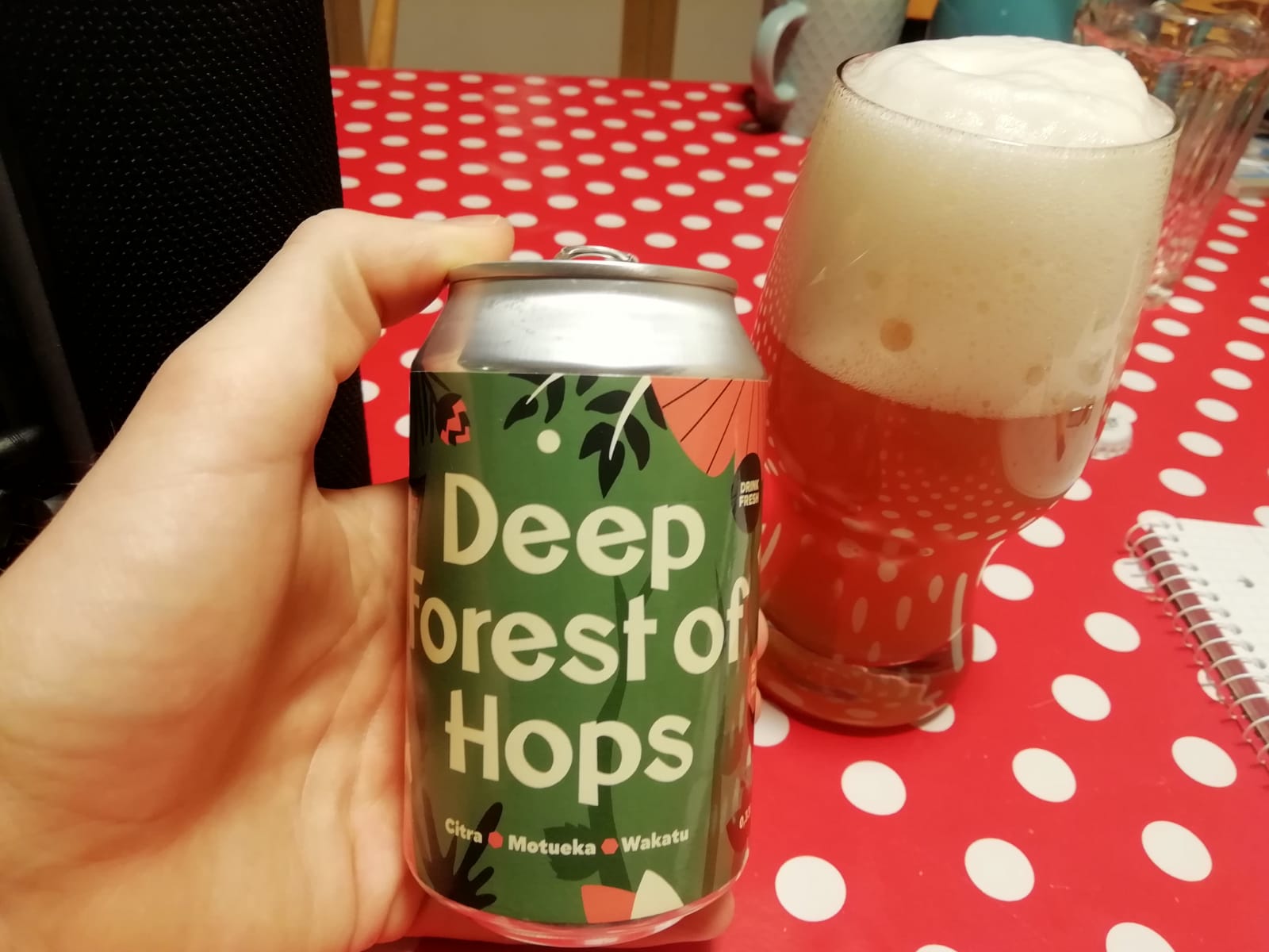 Deep Forest of Hops NEIPA von TingelTangel Beer. Spannende Hopfenkombination. Die Vanille kommt auch durch, zusammen mit den Zitrusaromen super