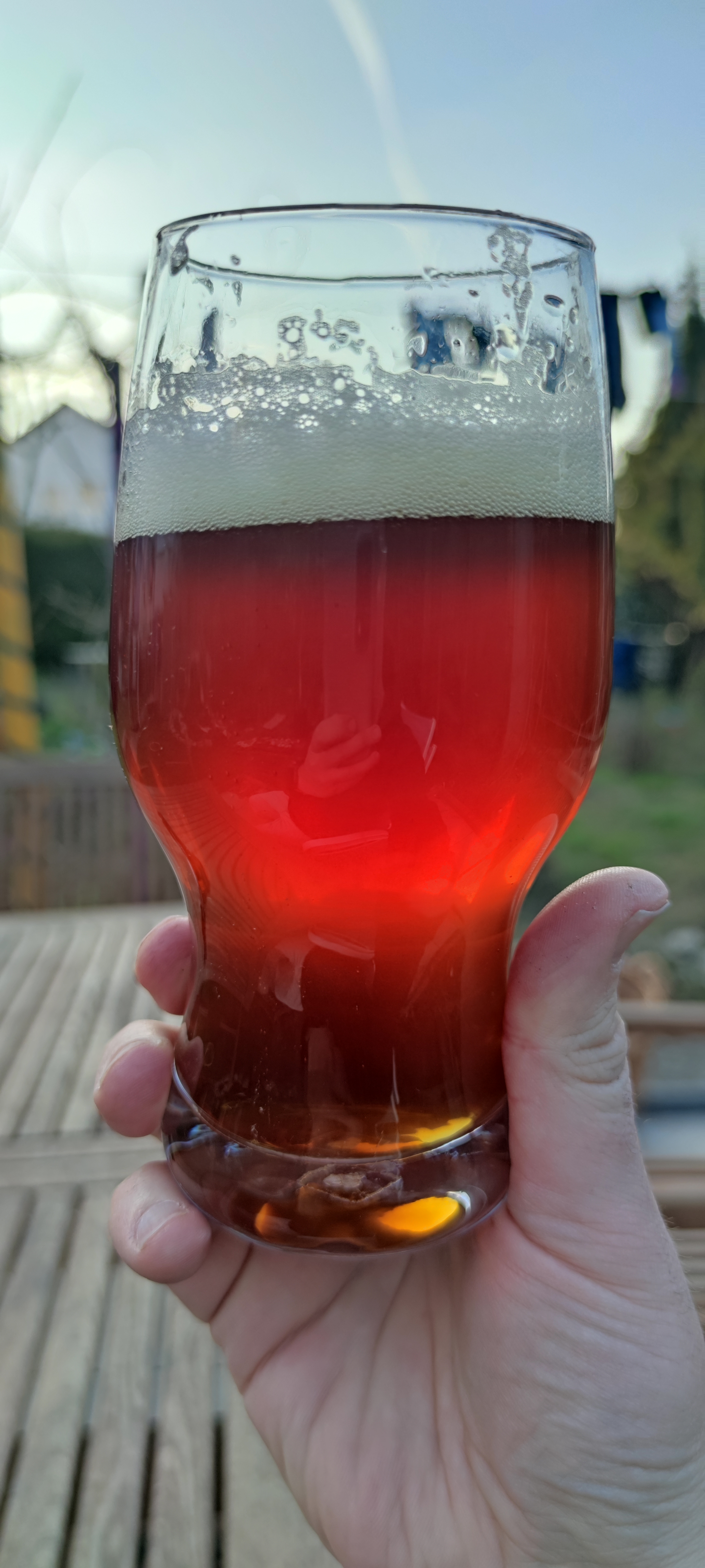 Vor ca 7 Monaten gebraut, hat mir nicht geschmeckt und habs zur Seite gestellt. Mittlerweile ganz interessant. Und die Farbe ist immer noch toll