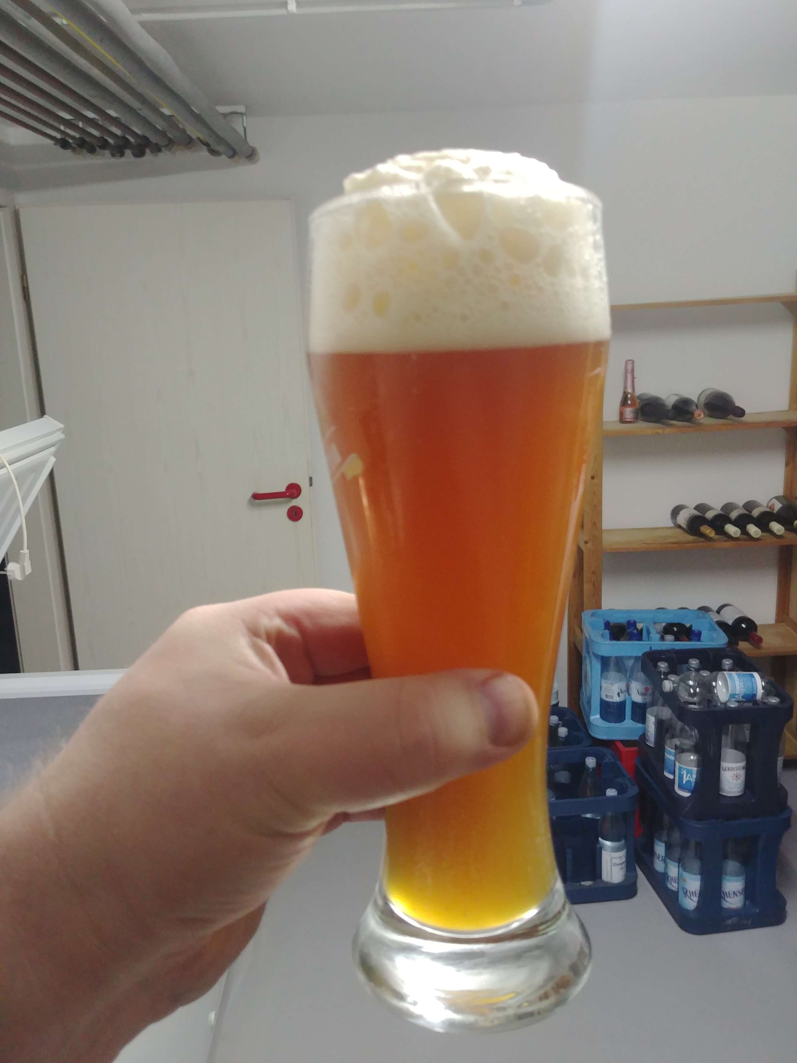 Mein Red Ale, mit Moutere als Bitterhopfen , Williamette und Mosaic als Aroma und im Whirlpool. Nicht gestopft, aber dezentes Mango, Maracuja Aroma. Leichte Süße, vollmundig, erinnert ein wenig an das Riegele Simcoe. Ich bin sehr zufrieden