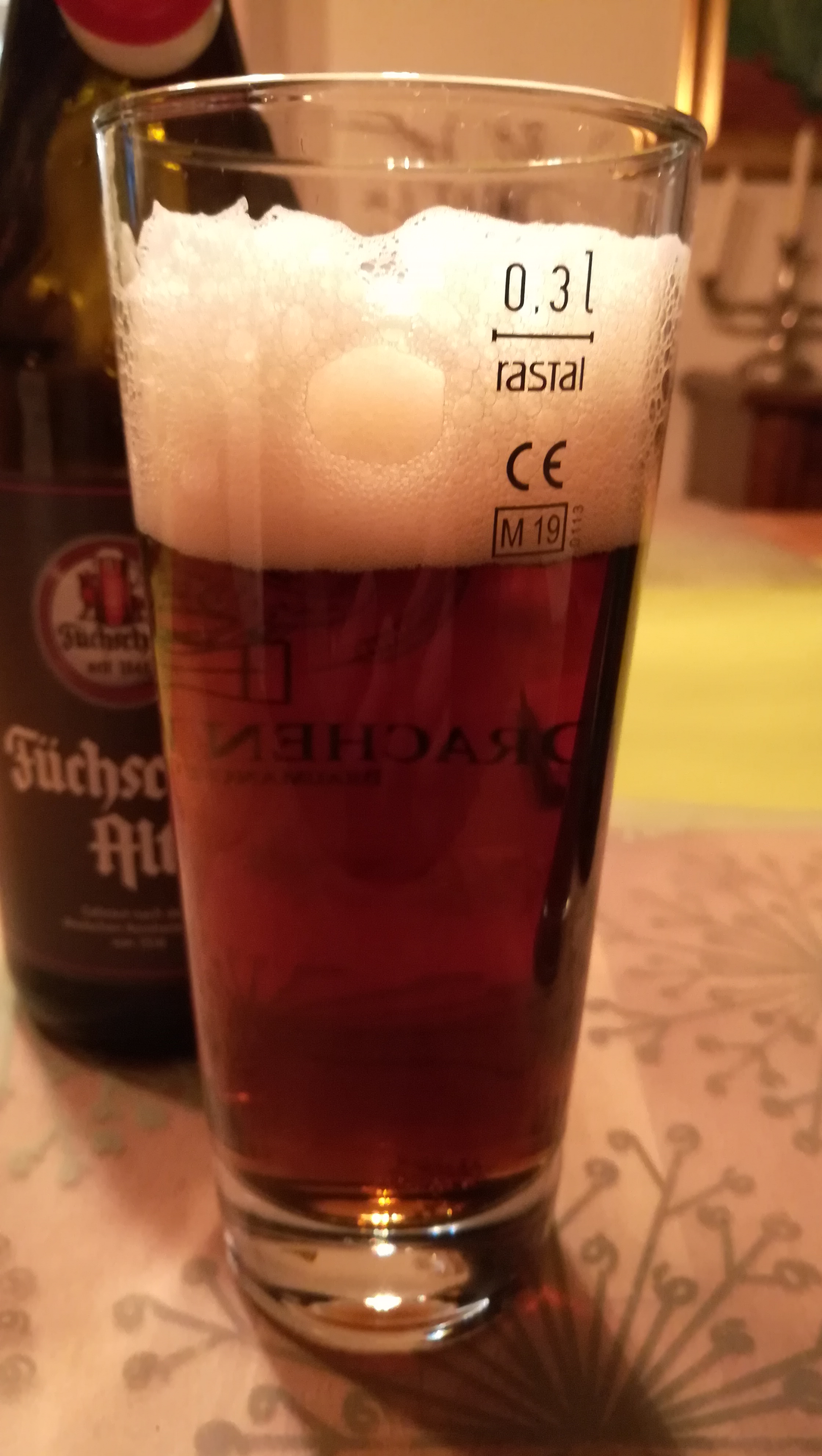 Sein Bier ist geringfügig heller und trüber als das Füchschen. Der Schaum ist beim Füchschen etwas dichter und länger anhaltend.