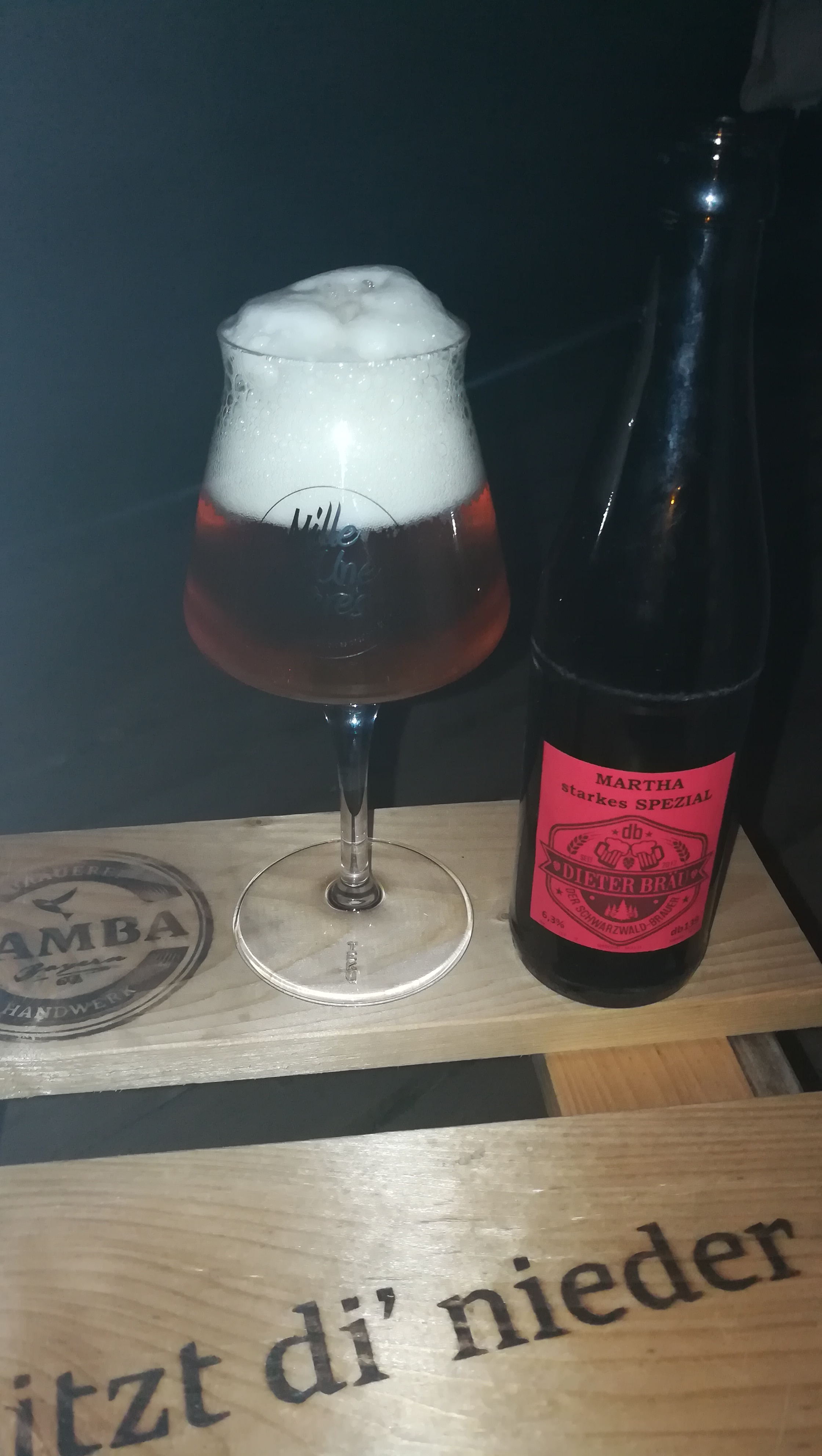 Auch dieses Bier finde sehr gelungen. Der Schaum steht wie eine 1. Es ist schön malzig, ein wenig Karamell klingt an. Ein sehr süffiges und daher wegen der 6.3 vol.% gefährliches Bier!