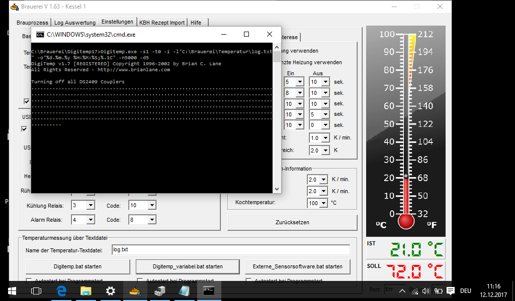 Du brauchst Digitemp nicht mehr über "Temperaturmessung über Textdatei" zu starten. Du kannst direkt Temperaurmessung über Digitemp wählen.
