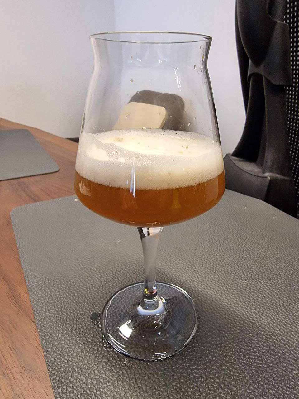 Erstverkostung meines "Unfall" NEIPAs. Ausbeute bodenlos schlecht (<50%), dann noch panisch mit einem Rest Malzextrakt und Zucker nachgeholfen, beim 2. mal Stopfen (vorher schon unter Druck vergoren) hat mir der Fermzilla beim Öffnen bis an die Decke gespritzt und einen Schaum-Strahl über den Boden verteilt. War trotzdem nicht umsonst, das Bier ist super geworden!