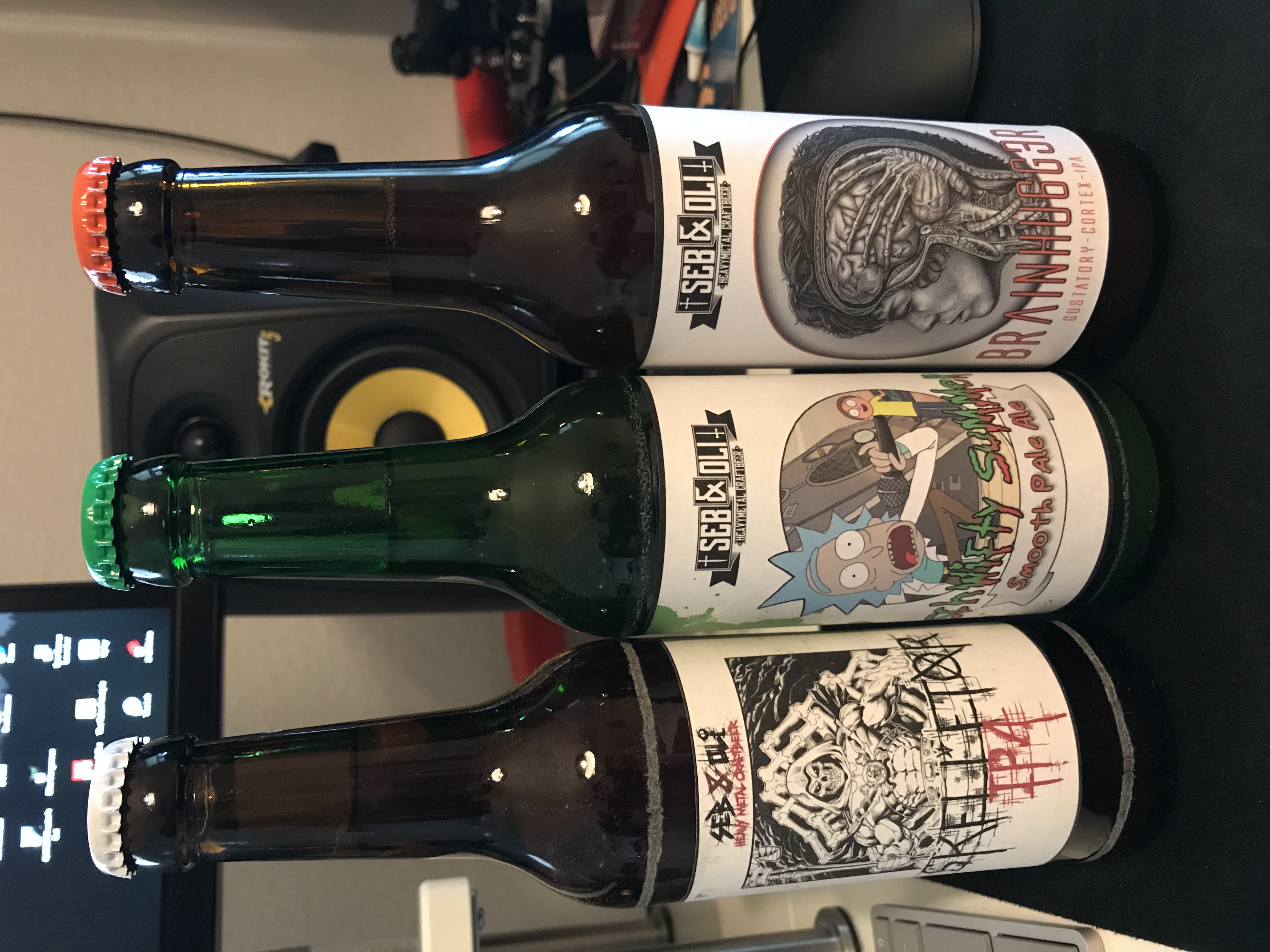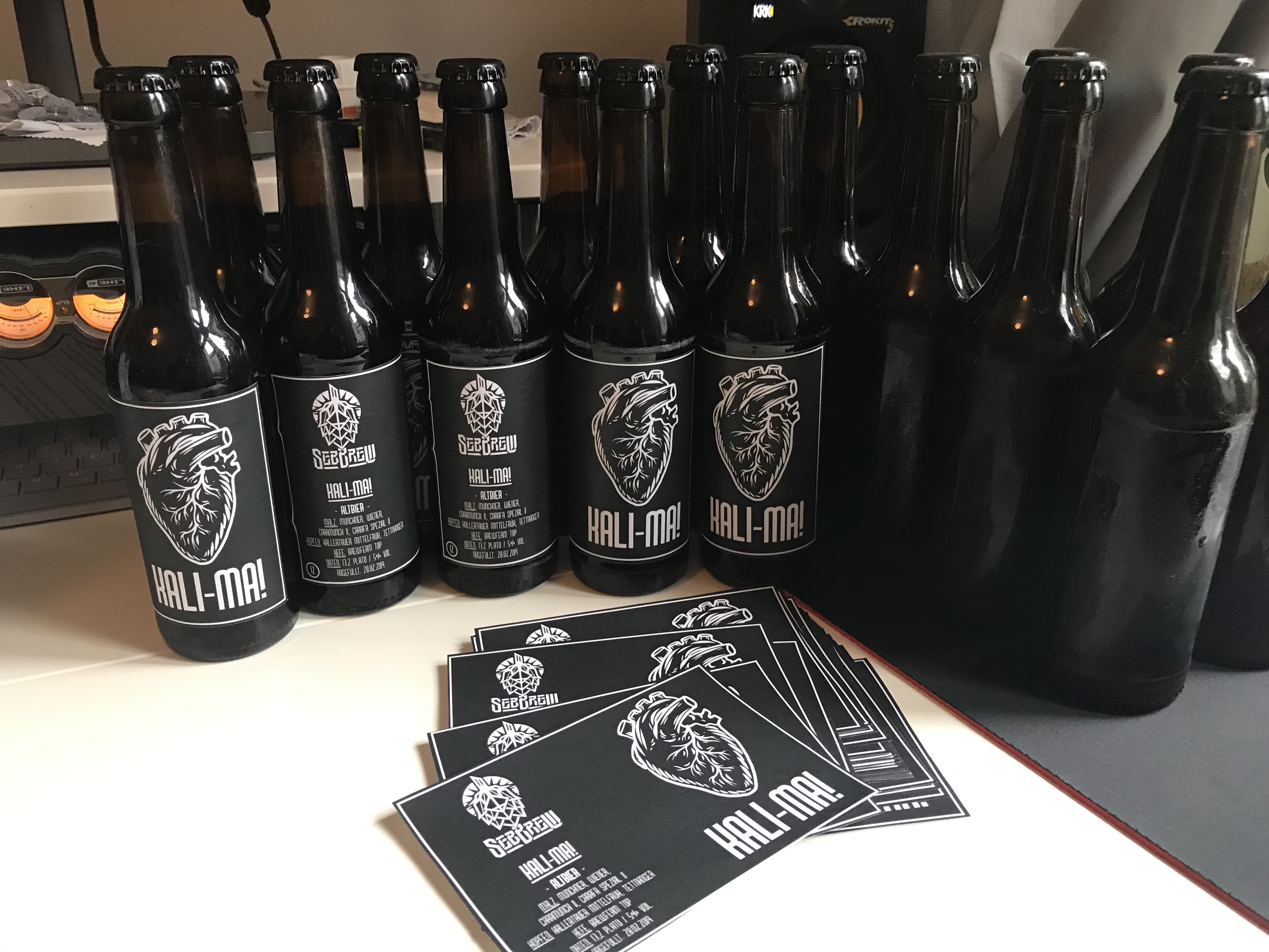 Ich hab diese Woche ein bisschen Zeit investiert um zu lernen wie ich meine Label digital auf die Flasche bringe (ohne Photoshop zu besitzen oder sonstige Grafikdesign-Kenntnisse, wohlgemerkt). Jetzt lade ich die Bilder der Flaschen mit transparenten Hintergrund auf meine Webseite damit Freunde und Bekannte Rückmeldung zum Bier geben können. Bin sehr zufrieden.