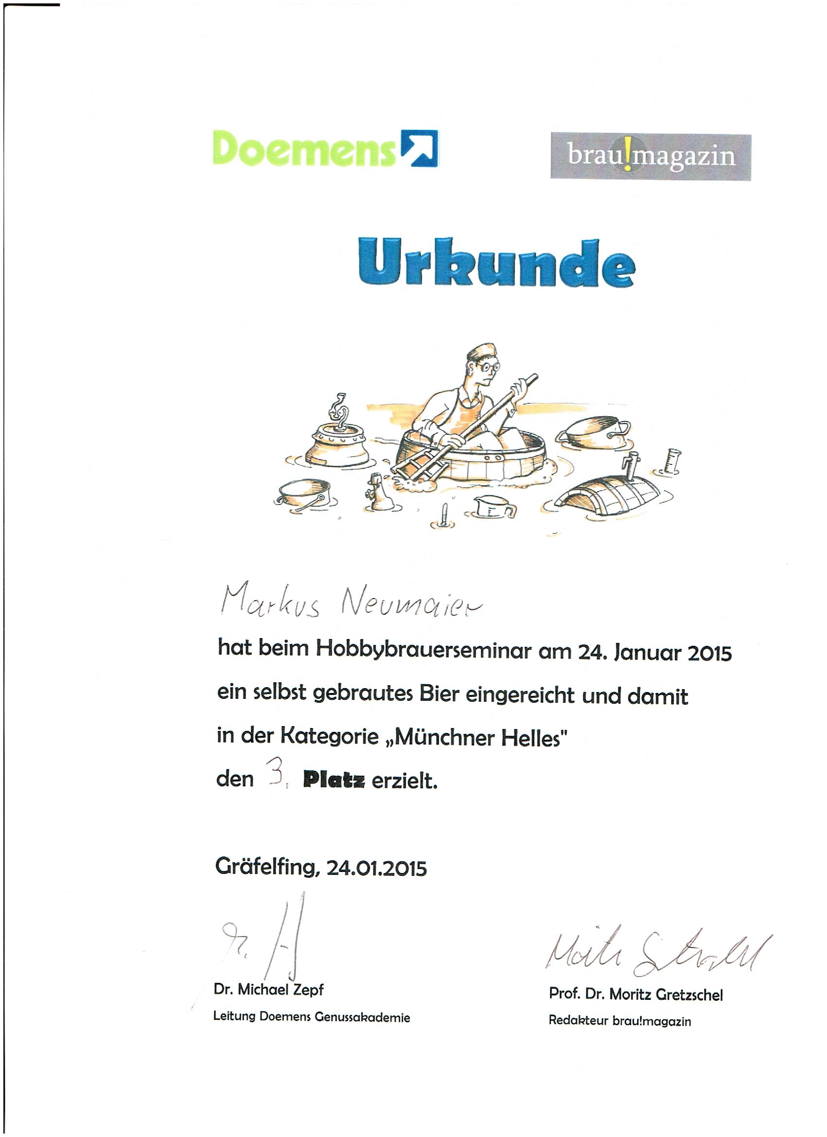 Der dritte Platz war eigentlich mein Oktoberfestbier. Mit meinem Münchner Helles habe ich schließlich noch den vierten Platz belegt.