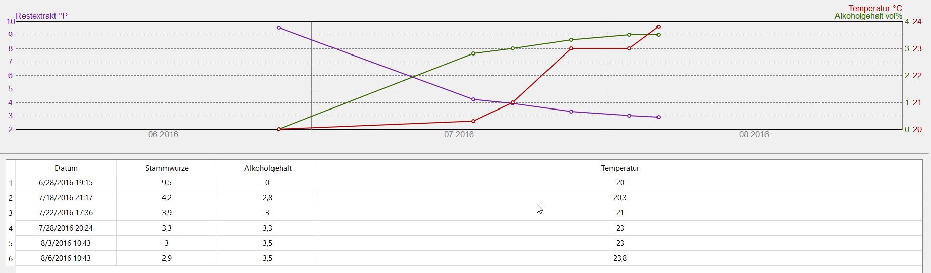 - Ausgären lassen: Wie stark darf sich der Restextrakt in den 3 Tagen noch verändern? 0,1° Plato? Gar nicht? Ich messe mit dem Easydens mit einer Genauigkeit von 0,3° Plato. Die Spindeln sind ja soweit ich weiss nicht ganz so genau. Bei meinem ersten Untergärigem war die Hauptgärung erst nach 5 Wochen durch. Es war ein Wolke 7 von MMuM. Hier die Messpunkte aus dem Brauhelfer: - Nachgärung: Dauert die bei untergärigem Bier immer so lang? Oder hängt das an der Hefe? Die ist auch schon seit 3 Wochen im Gange... ich bin jetzt bei 1,6 Bar, 23,5 Grad. Das entspricht 3,8g/l Co2. Karbonisiert habe ich mit Zucker für 5g/l.