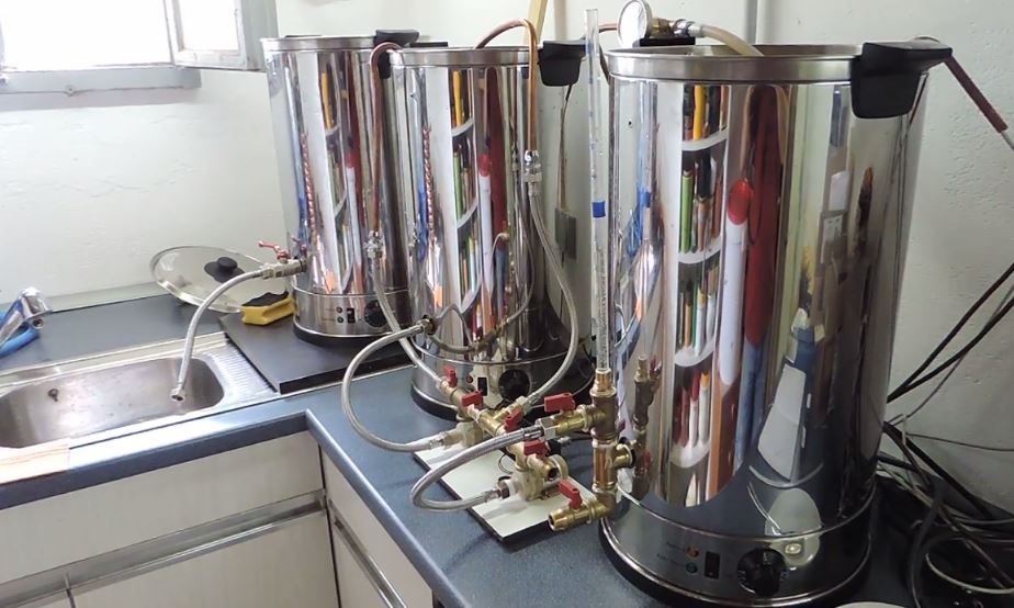 Die ersten drei Sude sind bereits ausgetrunken, der vierte gärt im Kühlschrank.