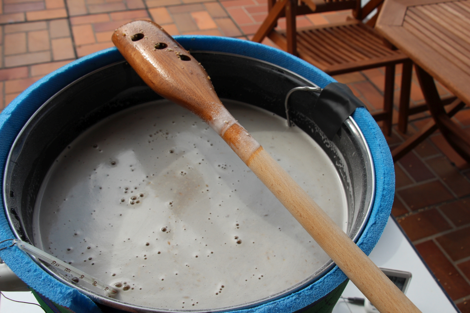 Und es wird von Hand gerührt. Die Erfahrung hat gelehrt, immer ein Backup-Thermometer zu nutzen.