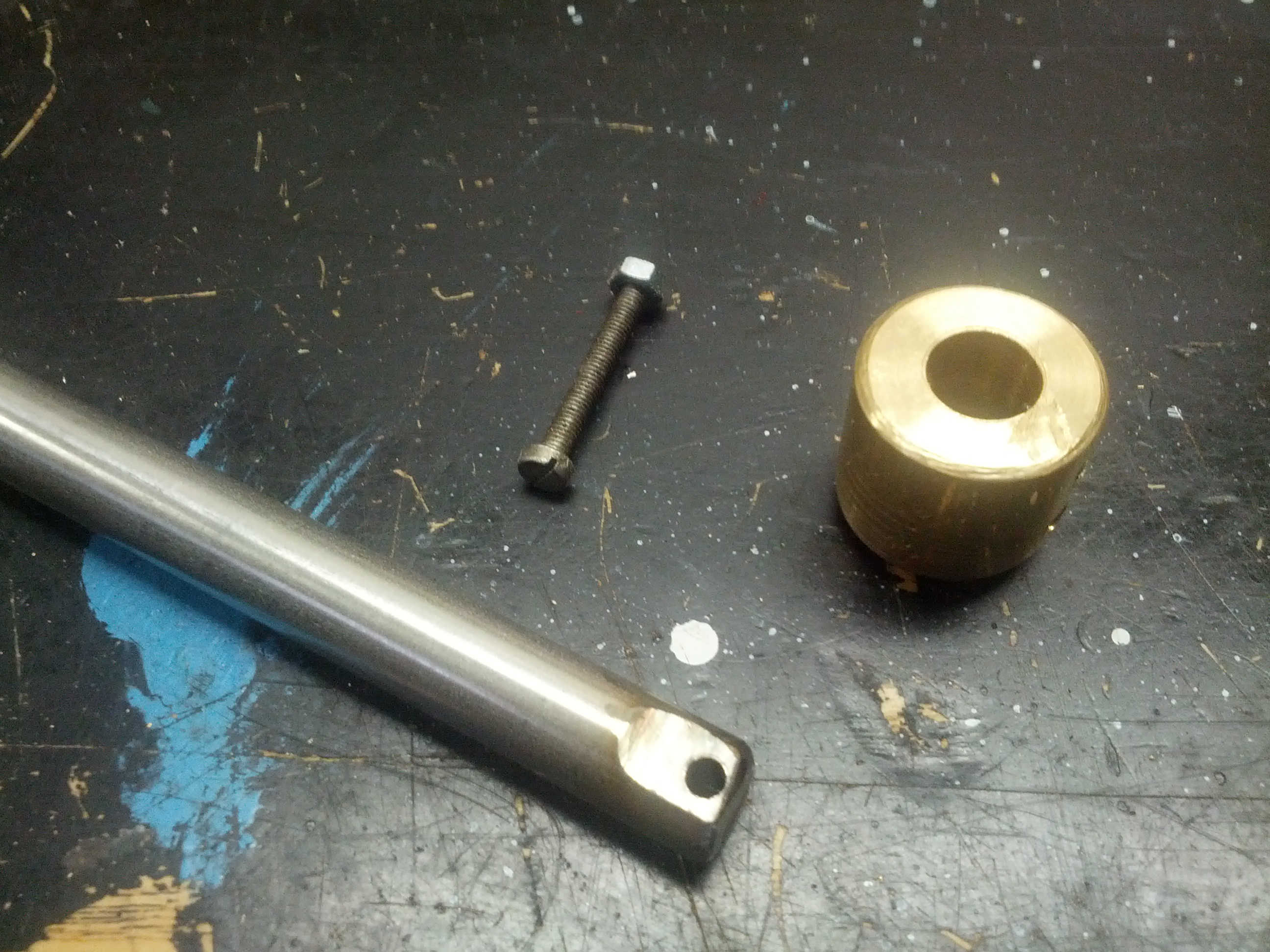 Das Ende der Stahlwelle mit gebohrtem Loch wird in den Messingadapter gesteckt und mit einer M3-Schraube gesichert