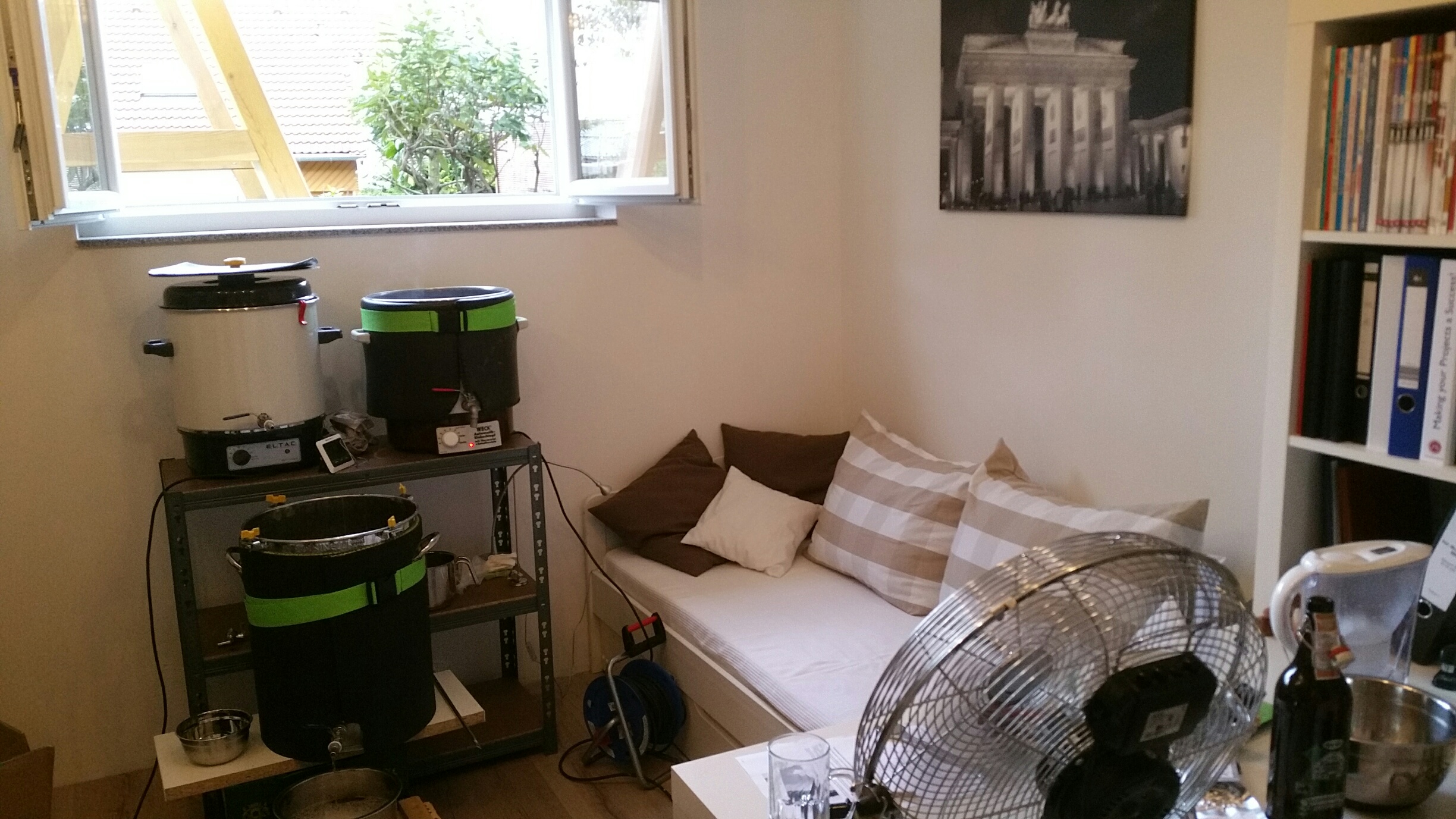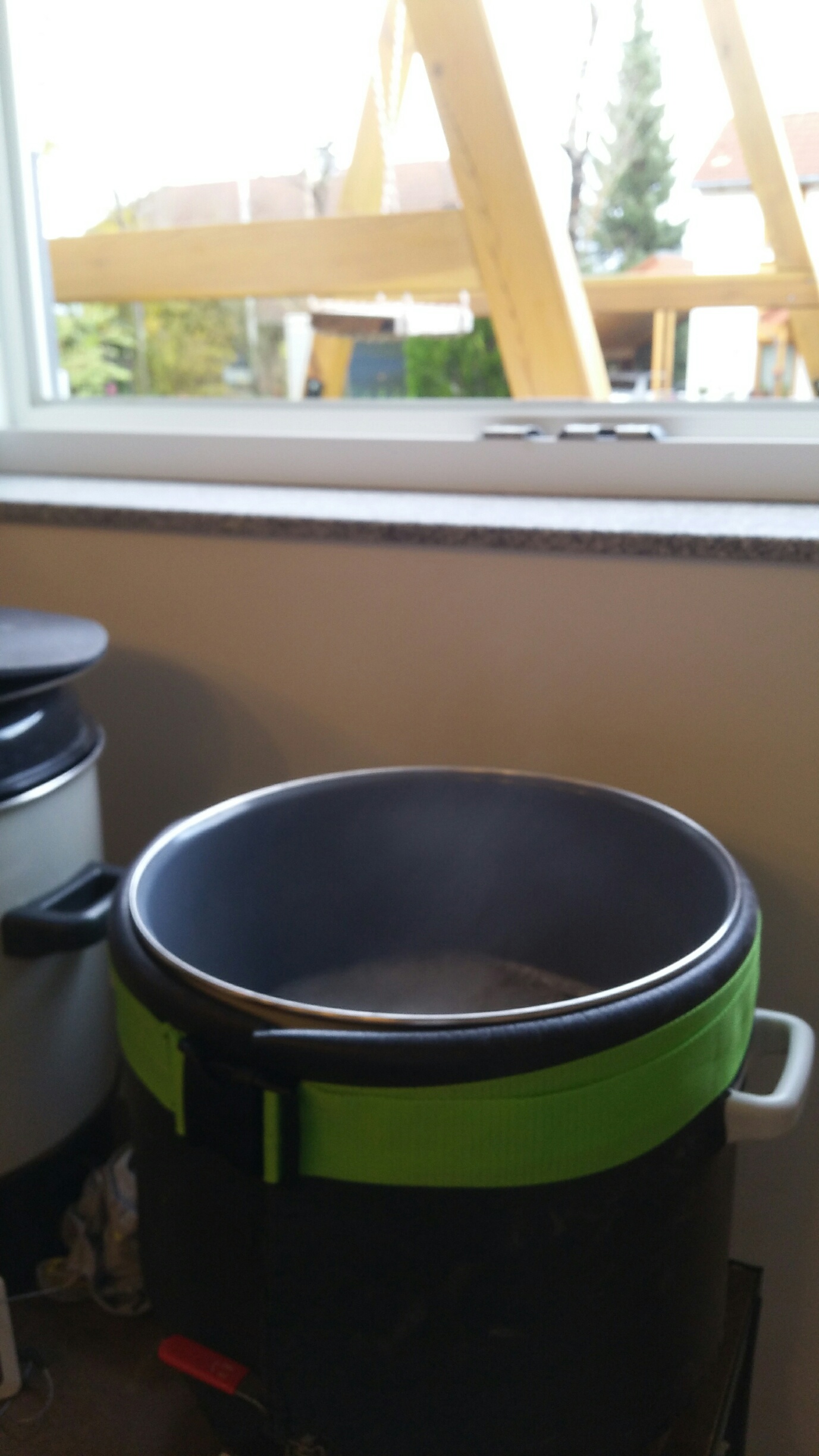 Ich wollte nicht draußen brauen und auch nicht den Wasserdanpf und Brüden im haus haben. Da kam mir diese Idee.