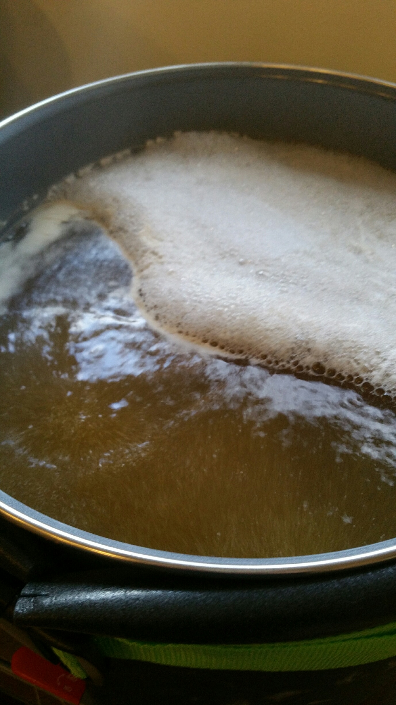 Den Nachguss haben wir dann im zweiten Einkocher erhitzt.