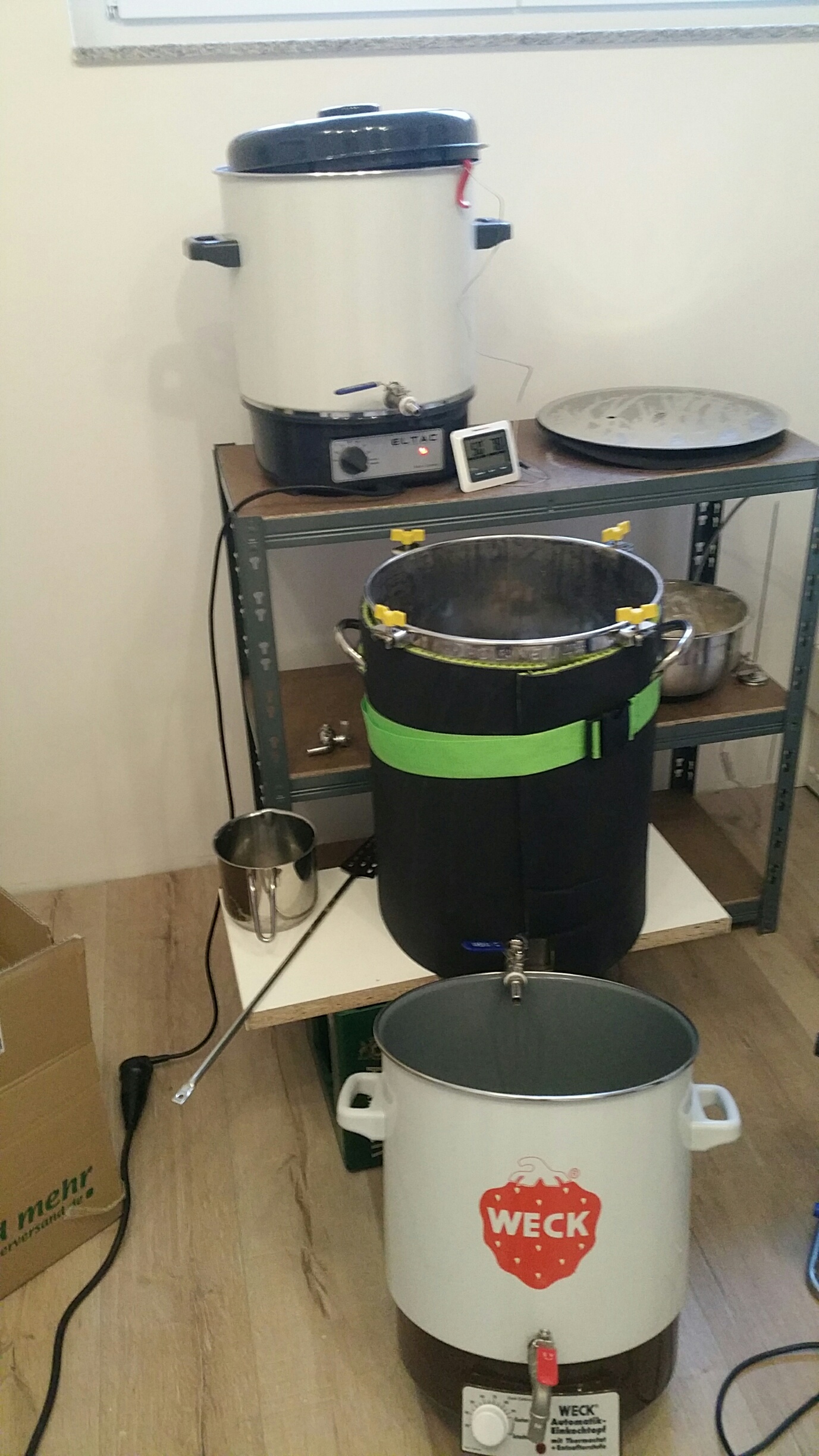 Mein Set besteht aus 2 Einkochern (Maischen und Nachguss) und einem Edelstahgärfass mit Läuterfreund (viewtopic.php?f=4&t=10956&p=172716#p172716)