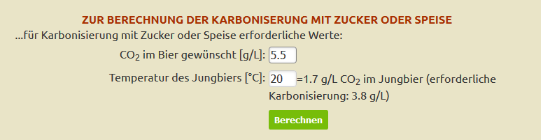 Ich glaube der von dir gewählte Rechner rechnet dir nur aus wieviel CO2 in deinem Bier noch fehlt. Schau dir doch mal den Rechner auf http://fabier.de an.