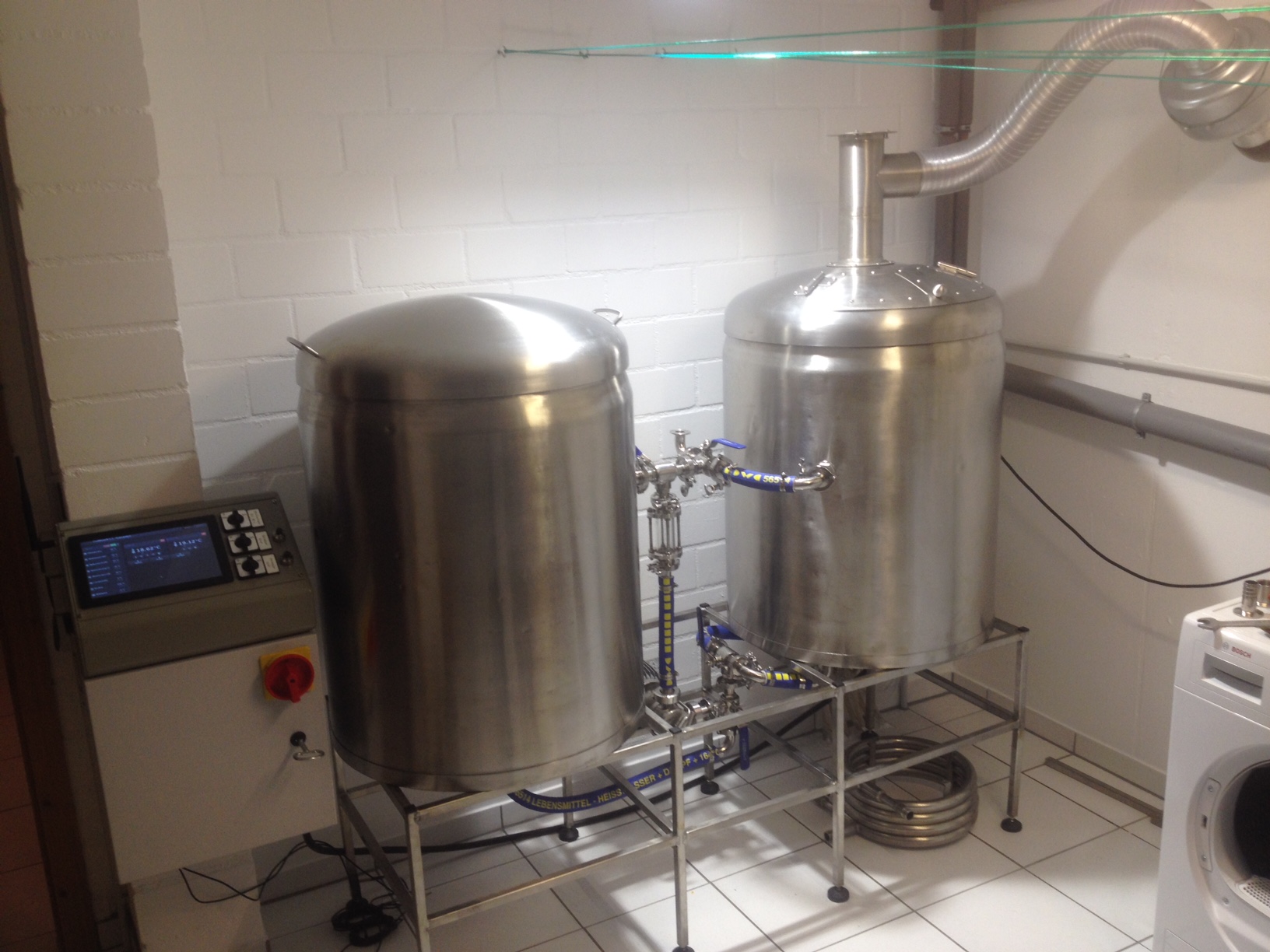So, nach dem Sommerurlaub gings endlich ein bisschen weiter, die Kessel habe ich gebürstet, der Schaltschrank ist soweit fertig und die Wände mit Latexfarbe gestrichen. Die Heizung habe ich auch bereits getestet, läuft. Fehlt nur noch die Wellenbuchse, um das Rührwerk am Motor zu befestigen und die Steuerleitungen für die Motoren von Pumpe und Rührwerk, dann geht's endlich los!!! Mitte Oktober soll der erste Sud laufen...