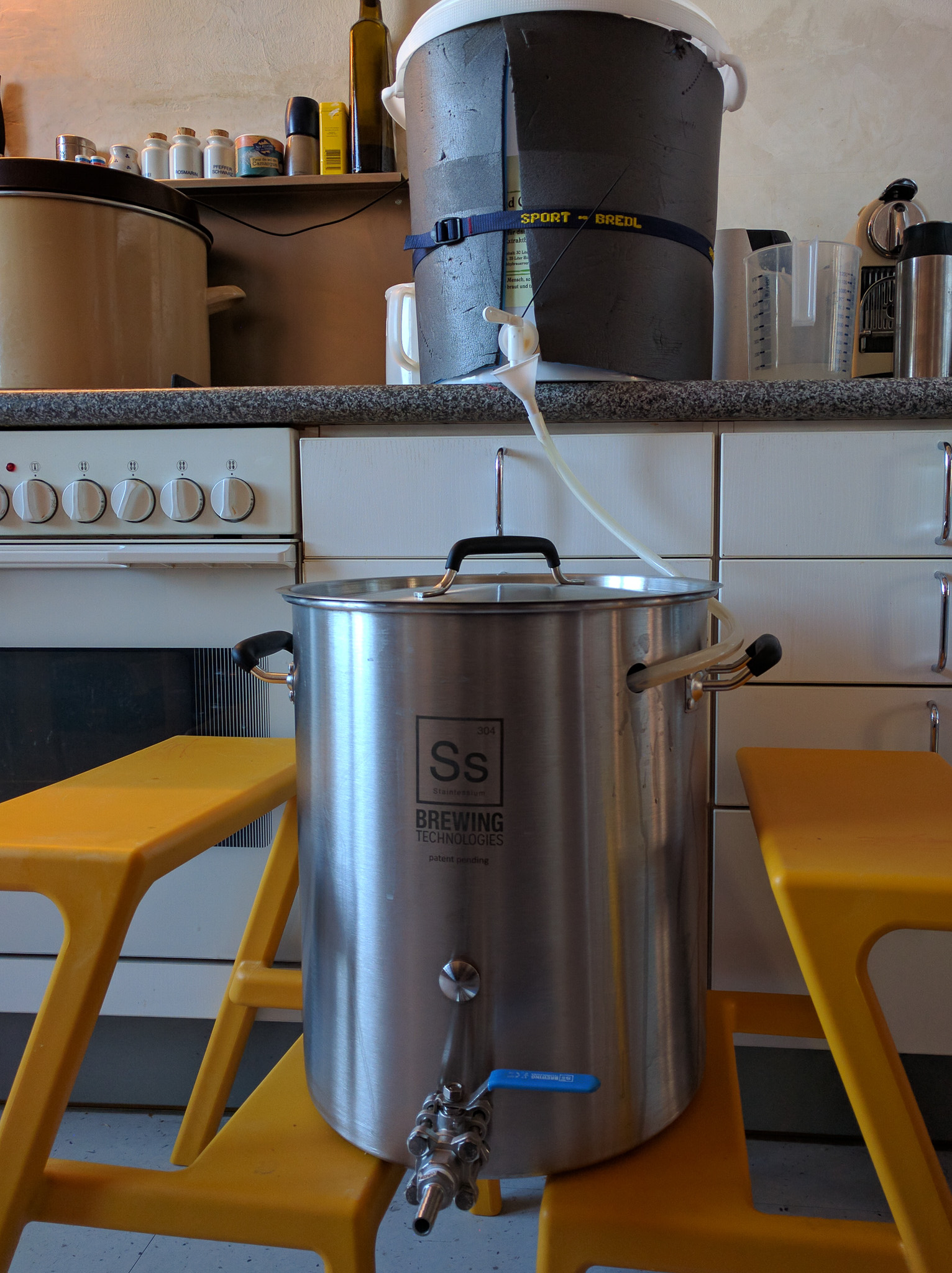 Angefangen habe ich mit einem 25l Einkochtopf auf dem Gasherd, mittlerweile besitze ich dazu noch einen schicken 38l SS Brew Kettle und einen passenden 30l Brewbucket Fermenter. Als leidenschaftlicher ITler darf bei mir natürlich auch der Technik-Faktor nicht zu kurz kommen, plane ich meine Brautage mit dem Kleinen Brauhelfer, benutze einen Raspi mit Craftbeerpi für die Temperatur- und Zeitmessung während des Maischens, im nächsten Jahr kommt dann vielleicht noch die eine oder andere Hendi dazu. Die Petlinge für die iSpindel liegen auch schon im Schrank ;-)