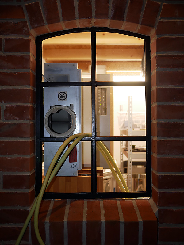 Den Dampf puste ich mit einer ausgemusterten Dunstabzugshaube nach draußen. Sie steht hochkant hinter dem Topf. So passt deren Auslass direkt durchs Fenster.