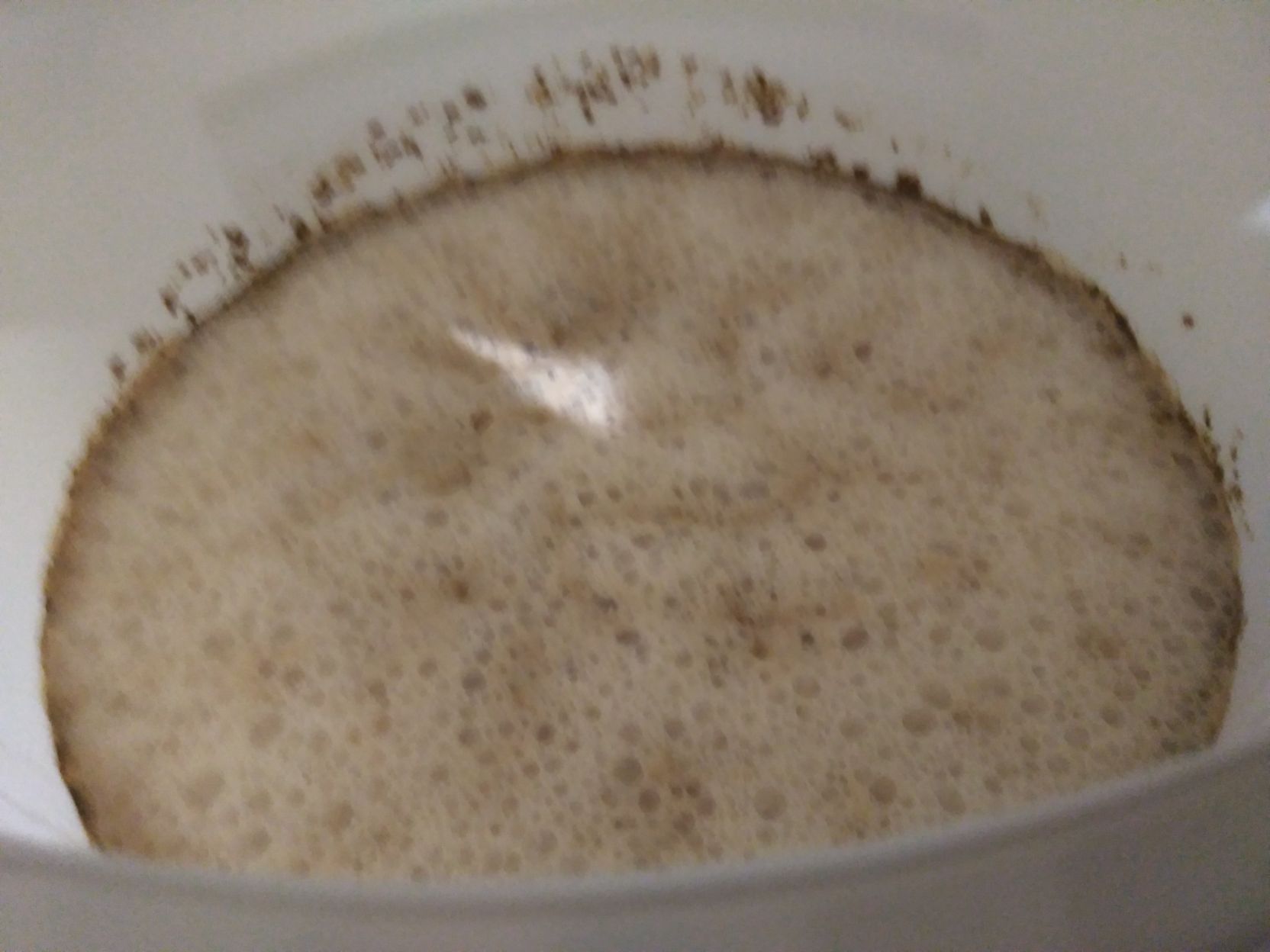 Könnt ihr mir sagen, was mit der Hefe los ist? Habe zwar noch zum Notfall Weizen-Trockenhefe da, aber die will ich erstmal nicht da reinkippen.