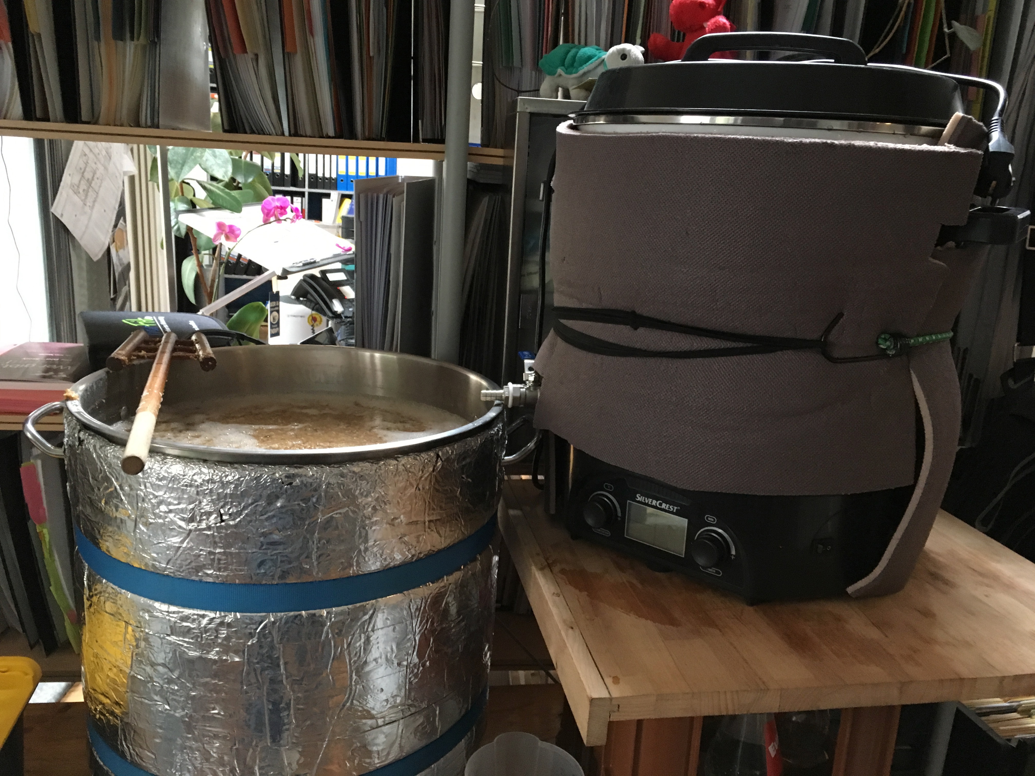 Ergebnis: wie geplant 34l mit 16.5°P. Treffer; Sudhausausbeute: 65%.