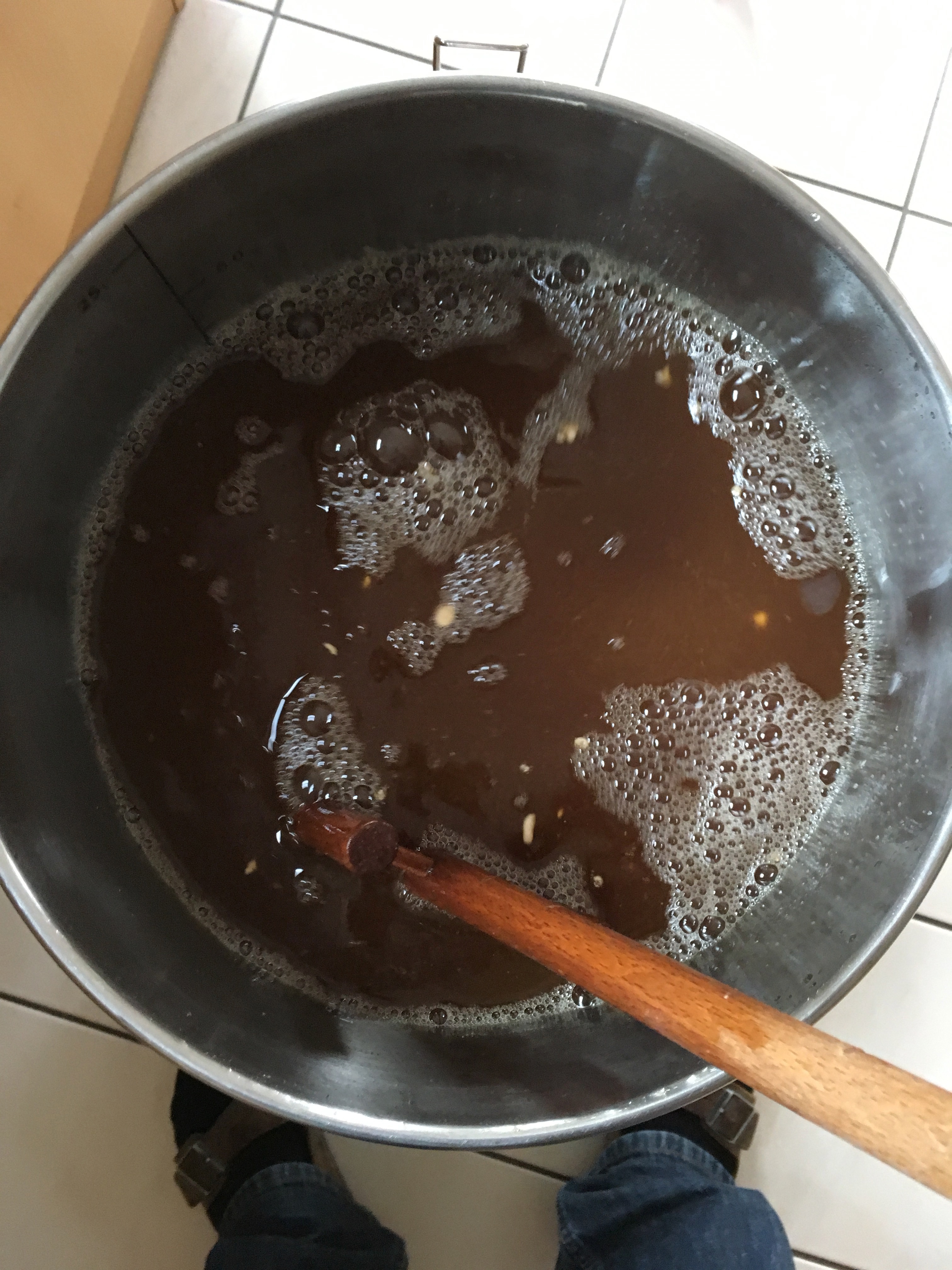 Während des Hopfenkochens geräuchertes Wildschwein verspeist. Mjam!