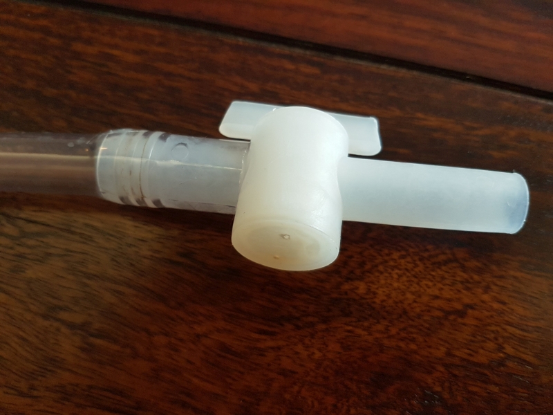 Und - was soll ich sagen, das ist es ! Mit weniger als einem Hub ist der Schlauch voll! Spritze abziehen und laufen lassen! Billiger, einfacher und sauberer geht's nicht! Freu!