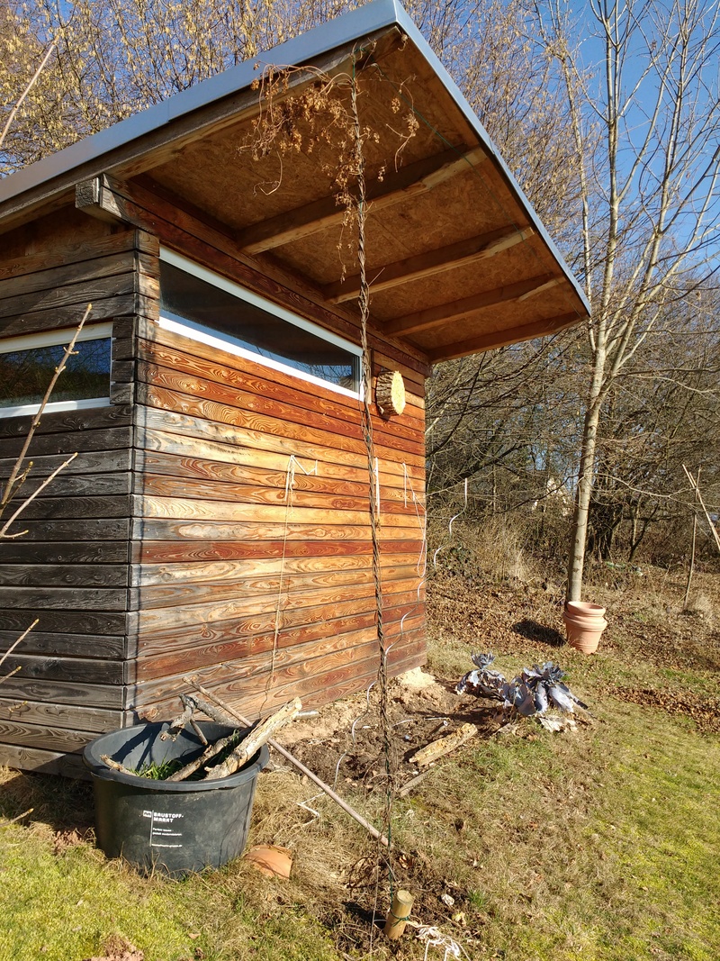 ich habe gerade im Garten gesehen, dass der Hopfen aufgewacht ist und schon neu treibt. Ich habe ihn bisher an stark improvisierten Rankhilfen aus verschiedenen Ästen und Seilen wachsen lassen, aber dieses Jahr möchte ich mal eine "richtige" Rankhilfe basteln, mit Metalldraht und so weiter.
