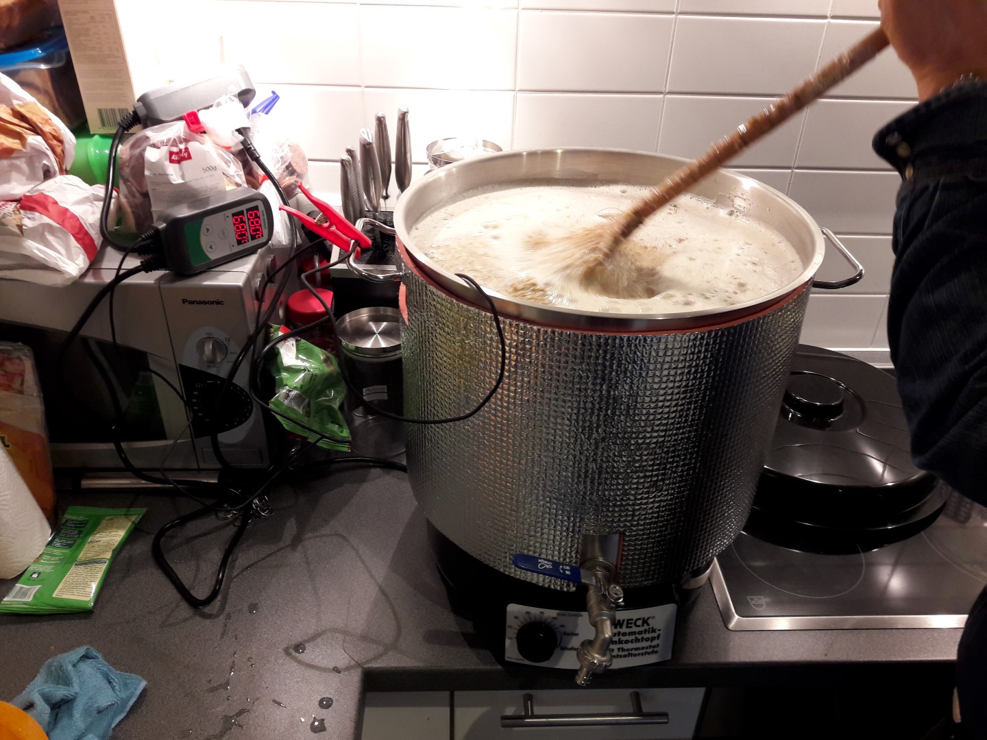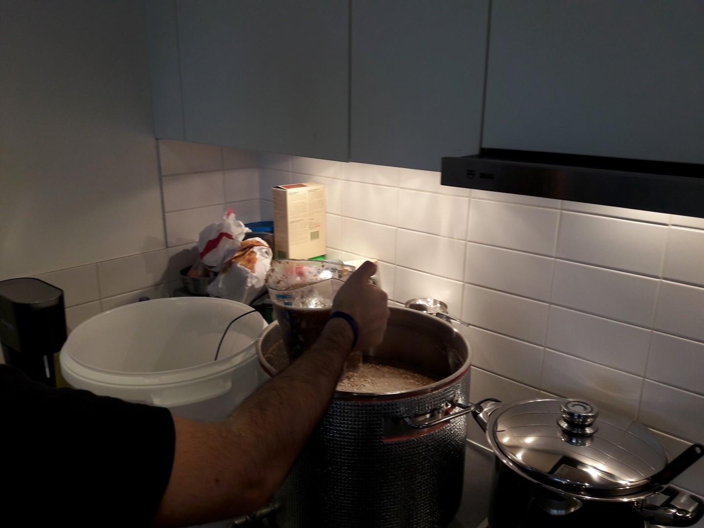 Primäre Frage war ja, ob man die 8kg Schüttung mit genügendem Hauptguss überhaupt in einen Einkochtopf bringt, oder ob es den Rahmen sprengt.