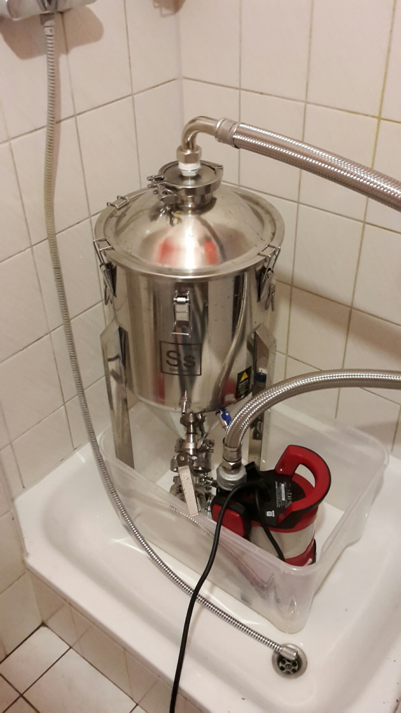 Die Kühlung mit dem Hailea hat bei mir gut funktioniert (habe keinen SS Brewtech Behälter). Ohne Ausgleichsbehälter kann ich mir eine ordentliche Entlüftung und den Druckausgleich nicht vorstellen.